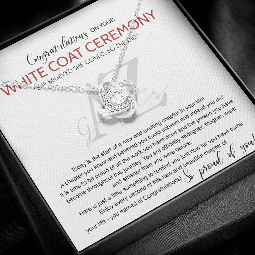 AZGifts White Coat Ceremony Gift Necklace, Chiropractor White Coat Ceremony, New Doctor Gift, Gifts For for Girl, Daughter With Message Card and Gift Box Necklace Love Knot Necklace