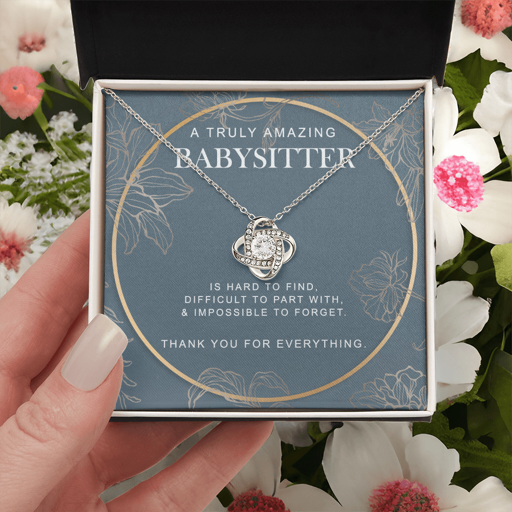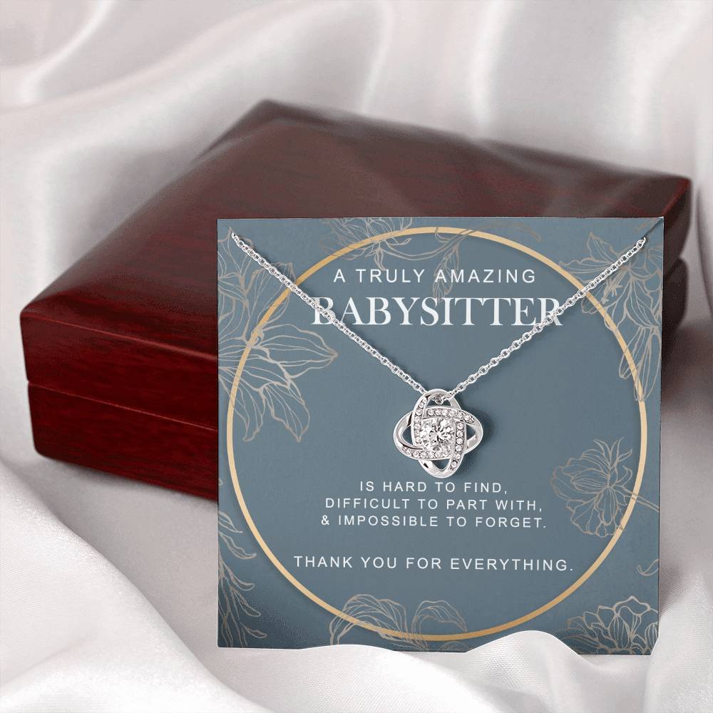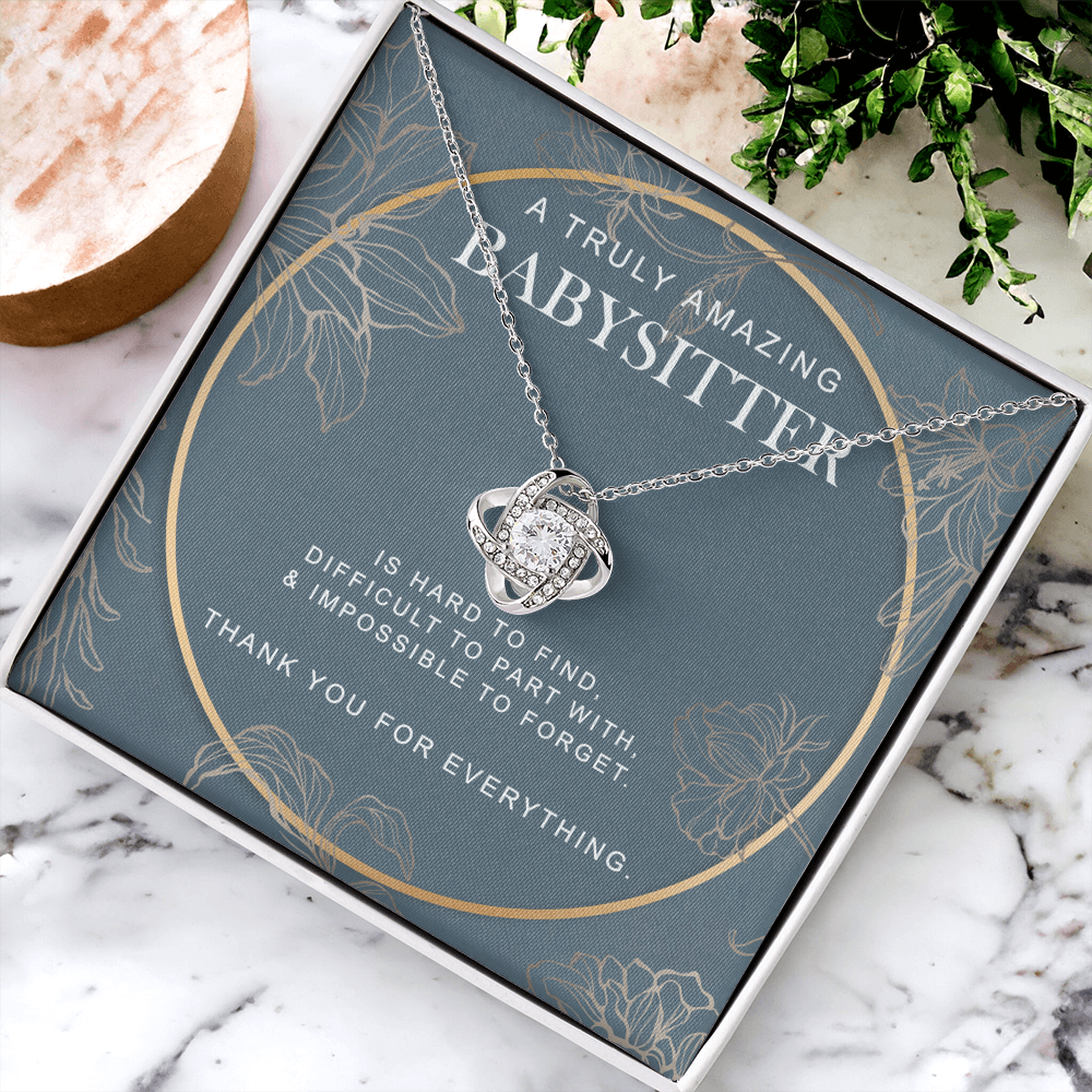 Babysitter Necklace, To A Truly Amazing Babysitter Love Knot Necklace From Family, Thank You For Everything Gift Necklace, Babysitter Gift Necklace, Love Knot Pendant Appreciation Gift for Babysitter