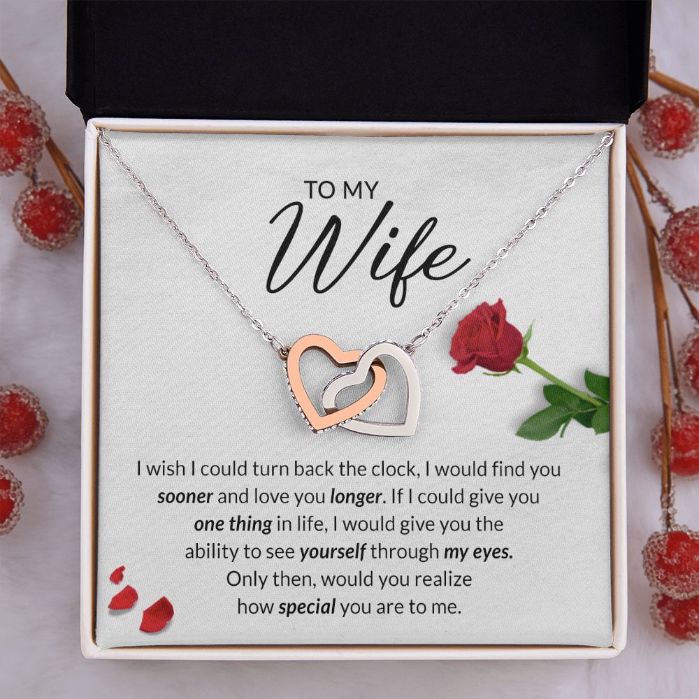 Birthday Gifts For Wife, Necklace Gifts For Wife From Husband, To My Wife Jewelry For Women , To My Wife Necklace from Husband Wedding Anniversary Present For Wife, Beautiful Wife Jewelry Christmas22 Interlocking Hearts Necklace