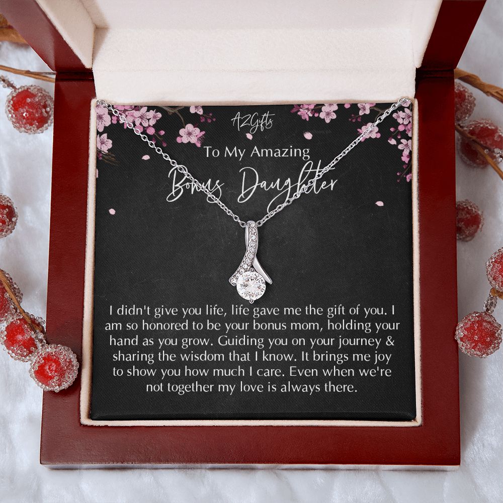 Bonus Daughter Gifts From Stepdad, Step Daughter Gifts From Stepmom, Stepdaughter Gifts From Stepdad, Father Stepdaughter Necklace, To My Bonus Daughter Necklaces, Christmas Gifts For Bonus D Alluring Beauty Necklace