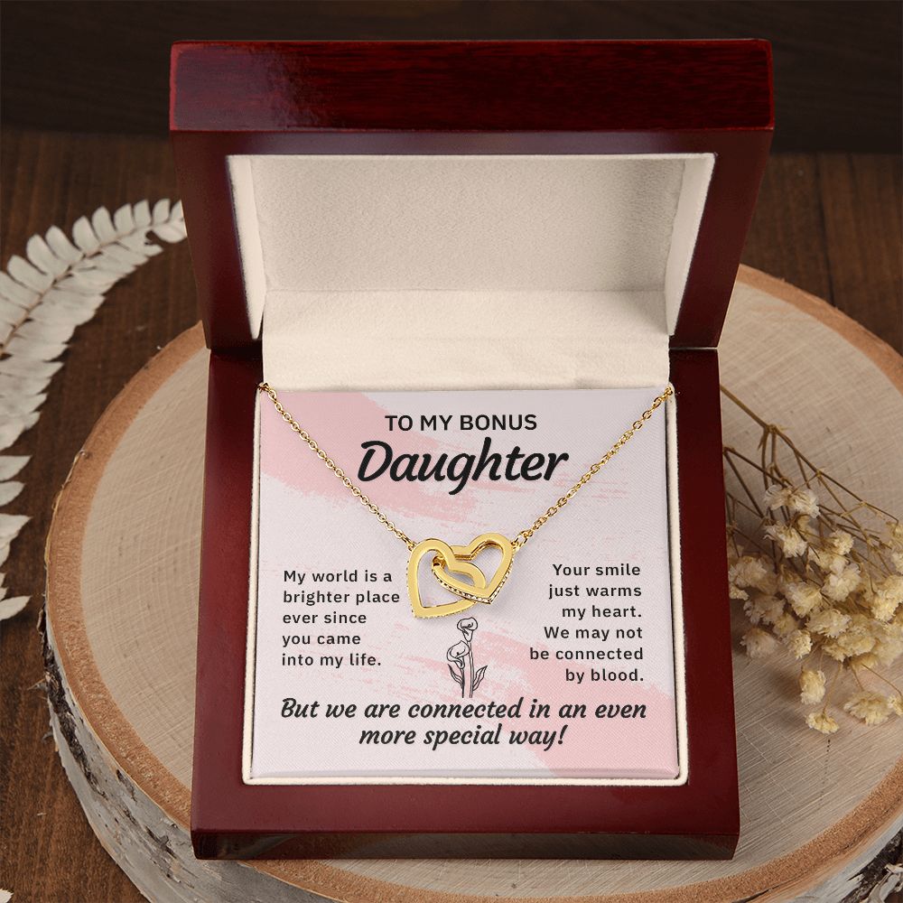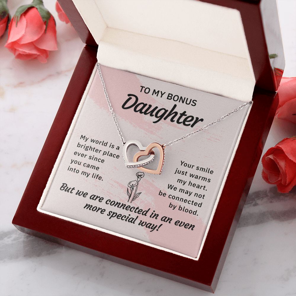 Bonus Daughter Gifts From Stepdad, Step Daughter Gifts From Stepmom, Stepdaughter Gifts From Stepdad, Father Stepdaughter Necklace, To My Bonus Daughter Necklaces, Christmas Gifts For Bonus11 Interlocking Hearts Necklace