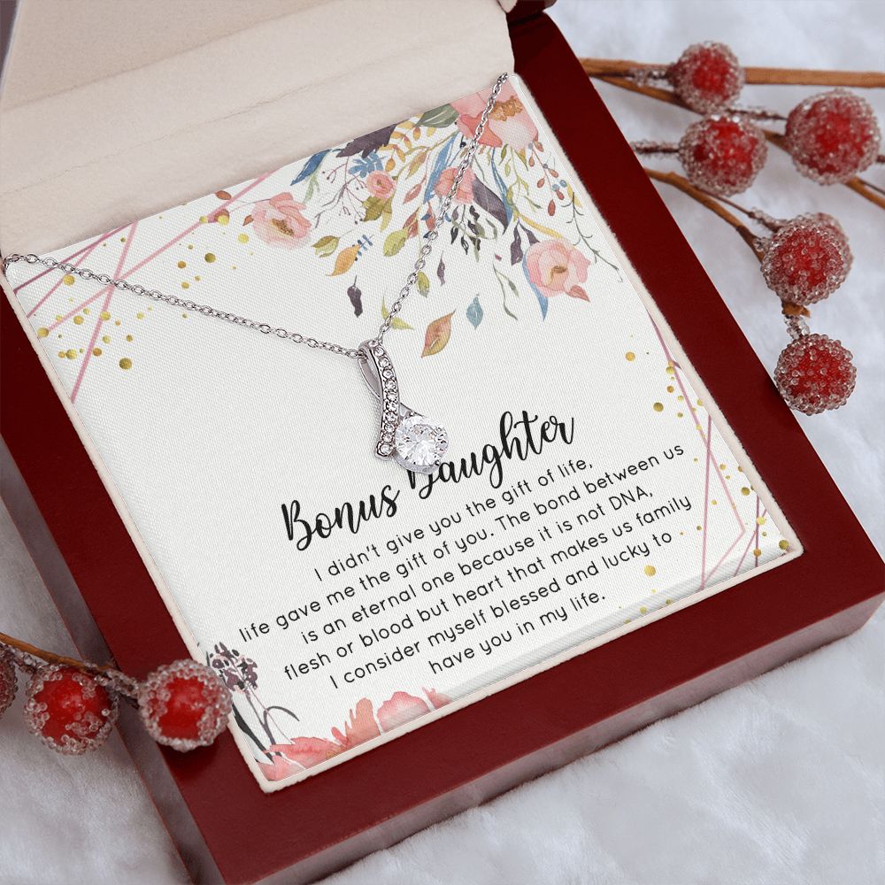 Bonus Daughter Gifts From Stepdad, Step Daughter Gifts From Stepmom, Stepdaughter Gifts From Stepdad, Father Stepdaughter Necklace, To My Bonus Daughter Necklaces, Christmas Gifts For Bonus2 Alluring Beauty Necklace