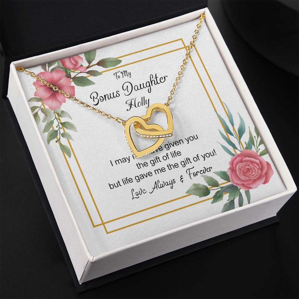 Bonus Daughter Gifts From Stepdad, Step Daughter Gifts From Stepmom, Stepdaughter Gifts From Stepdad, Father Stepdaughter Necklace, To My Bonus Daughter Necklaces, Christmas Gifts For Bonus6 Interlocking Hearts Necklace