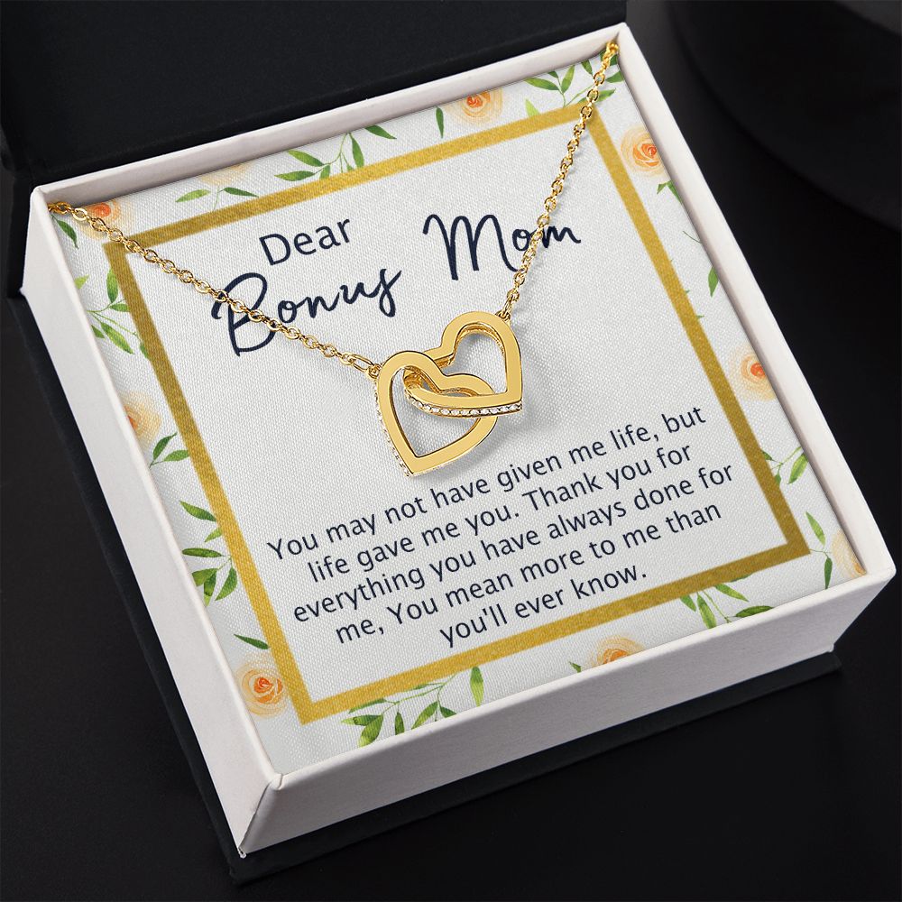 Bonus Mom Gifts, To My Bonus Mom Necklace, Bonus Mom Jewelry, Necklace for Bonus Mom, Step Daughter To Stepmother Necklace, Step Mom Necklace for Women Step Mom Mothers Day Jewelry Interlocking Hearts Necklace