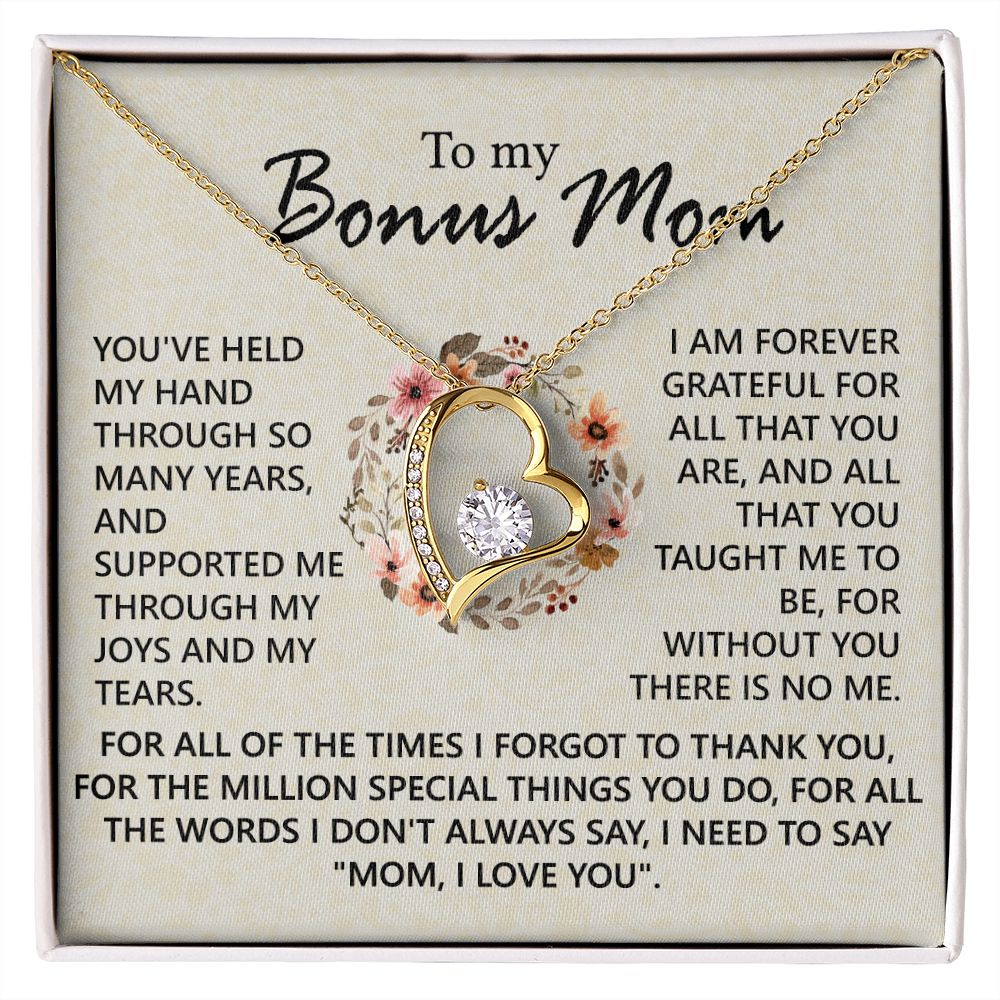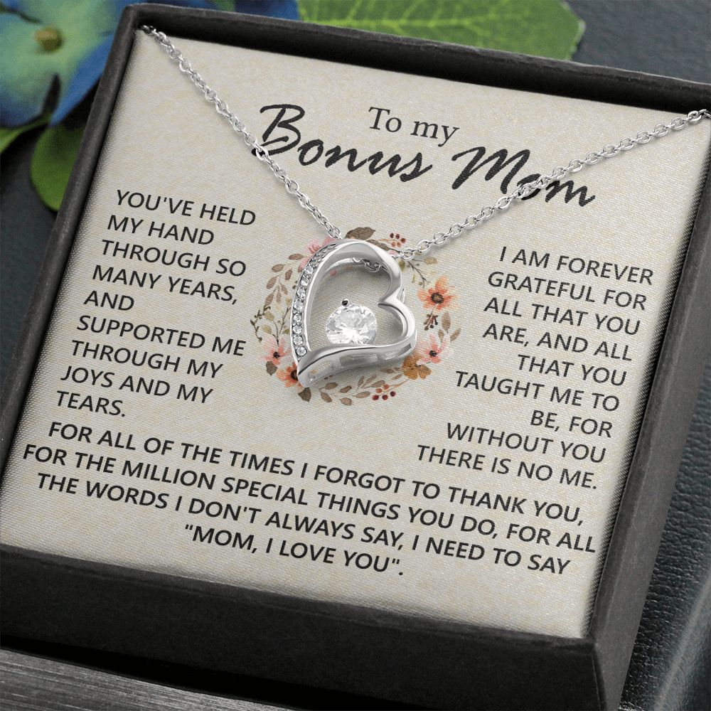 Bonus Mom Jewelry Gift for Stepmom, Foster Mom - Featuring Necklace With Meaningful Message Card & Gift Box for Birthday, Mother's Day Necklace for Bonus Mom Forever Love Necklace