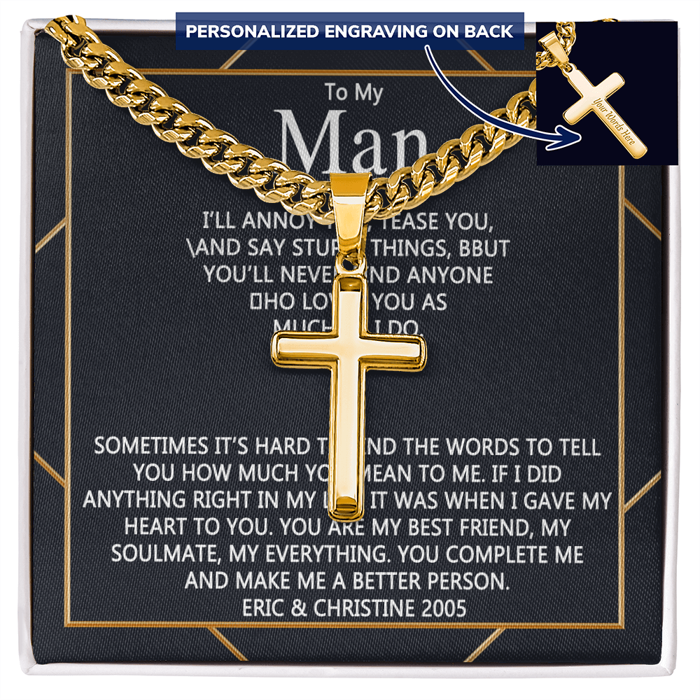 Wear your faith proudly with this Personalized Cross with Cuban Link Chain. Perfect for special occasions or everyday wear, our Personalized Cross Necklace is a wonderful gift idea for you or your loved one.