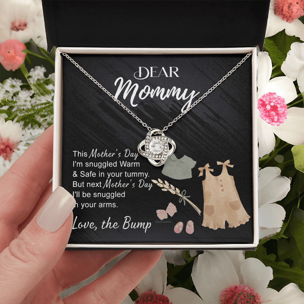Dea Mommy Necklace Mothers Day Love Knot Necklace, Mothers Day Gifts for Pregnant Wife, Happy Mothers Day Necklace Gift for Moms to Be, Mother To Be Mothers Day Gift, To My Mommy Necklace from Bump