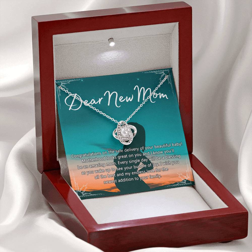 Dear New Mom Necklace, Dear New Mom Love Knot Necklace Gift From Daughter Congratulations Necklace Gift For Mom Your Beautiful Baby Necklace Gift For Mom Jewelry Gift For Mom, New Mom Gift Necklace