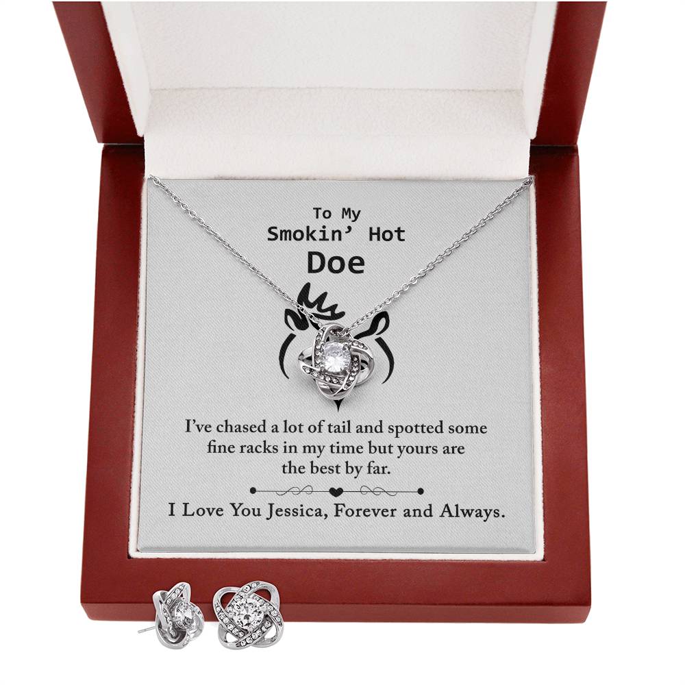 Surprise your loved one with this gorgeous Love Knot Earring & Necklace Set!