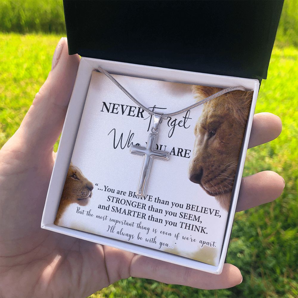 Father And Son Lion Cross Necklace Gift From SOn, Never Forget Necklace Gift From Son, Lion Dad Cross Necklace Birthday Gifts For Father Jewelry Son Gifts From Dad, Father's Day Necklace Gifts Personalized Cross Necklace 2222