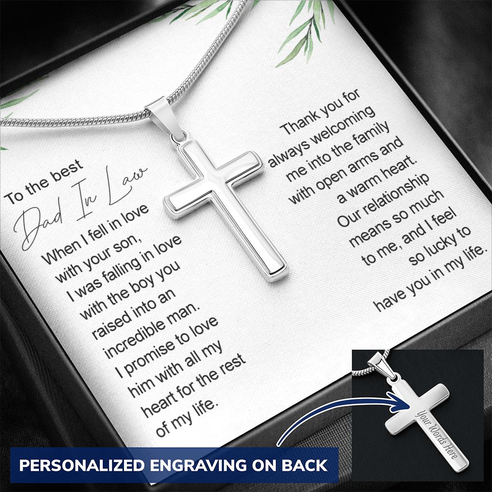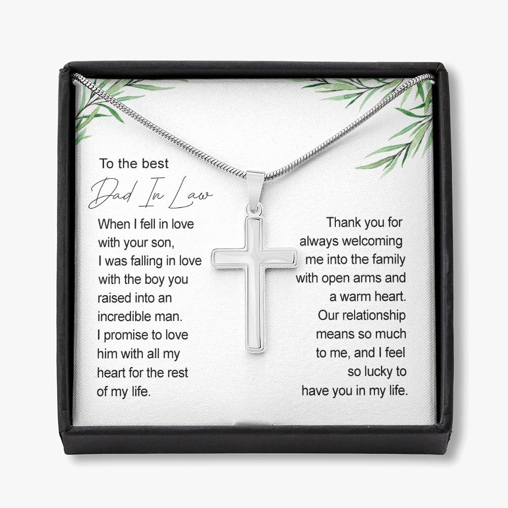 Father In Law Gift Father Of The Groom Wedding Gift For Father In Law From Bride Jewelry For Men Stainless Artisan Crafted Cross Necklace with Message Card Luxury Box Personalized Cross Necklace