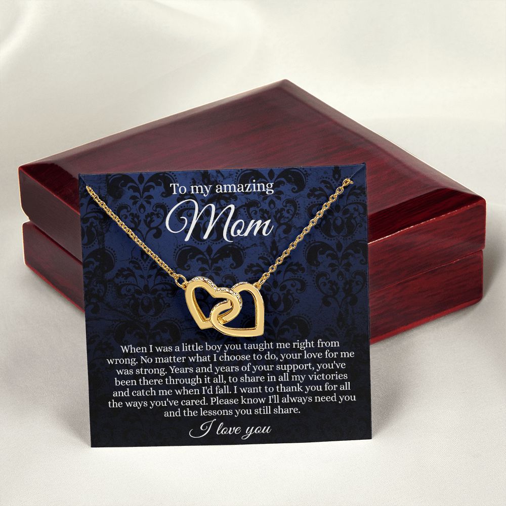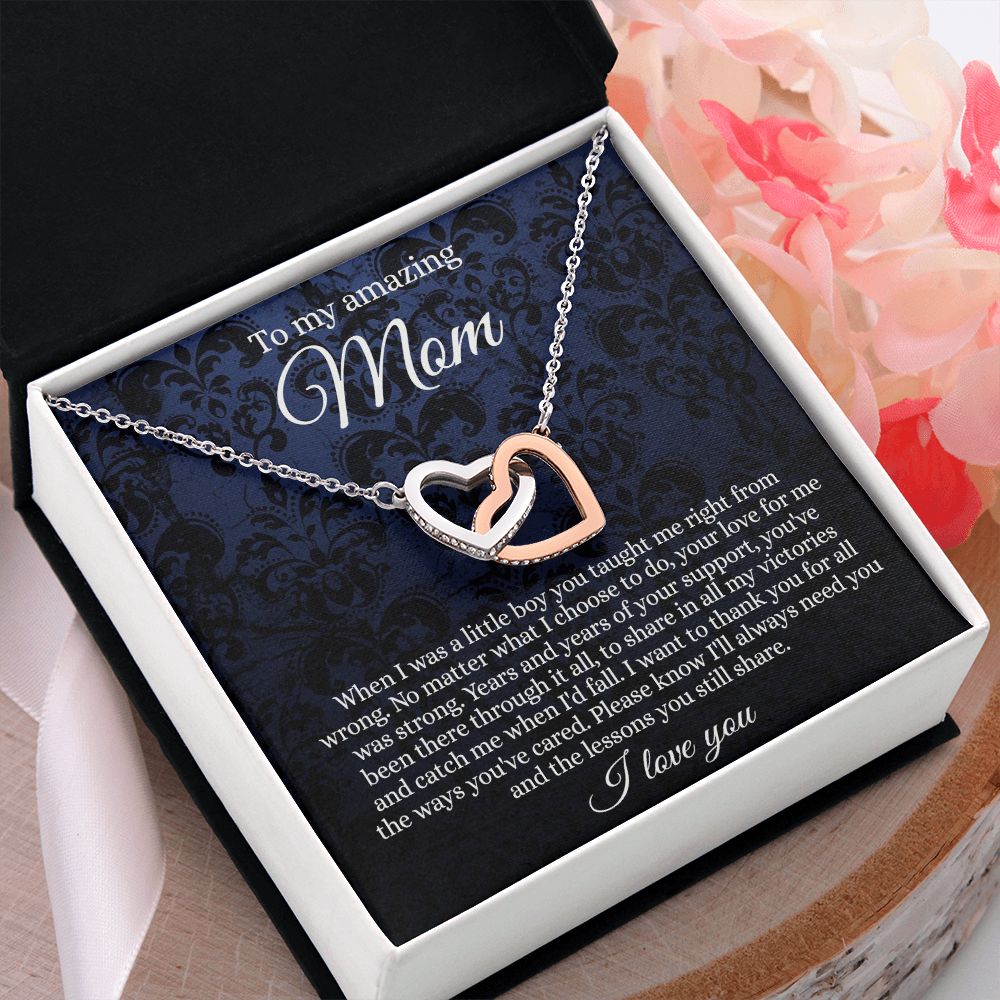 Gift for Mom Necklace, To My Beautiful Mom Love Knot Necklace Card, Mother’s Day Gift For Mom From Son, Thank You Mom Gift, Custom Jewelry Necklace For Mom Interlocking Hearts Necklace