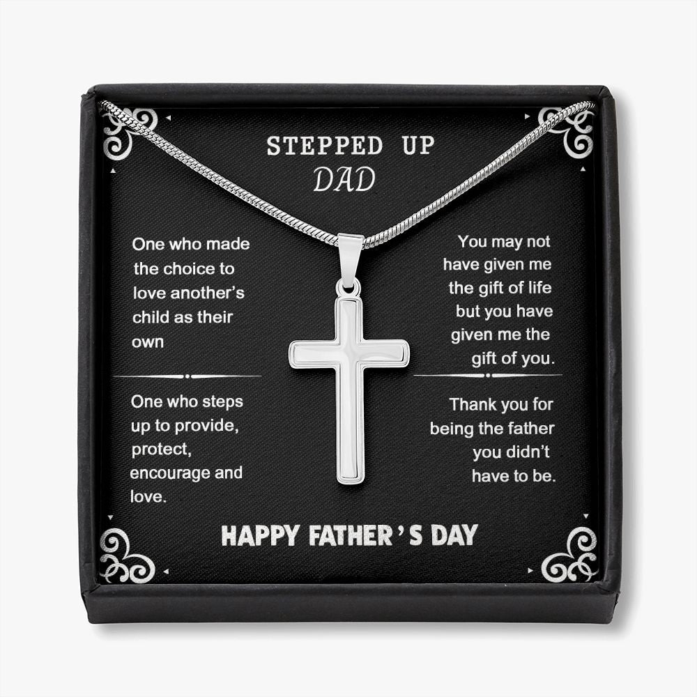 Gift For Stepdad Father's Day Present Idea Stepfather Gifts Bonus Dad Birthday Anniversary From Son Jewelry For Men Stainless Artisan Crafted Cross Necklace with Message Card Luxury Box Personalized Cross Necklace