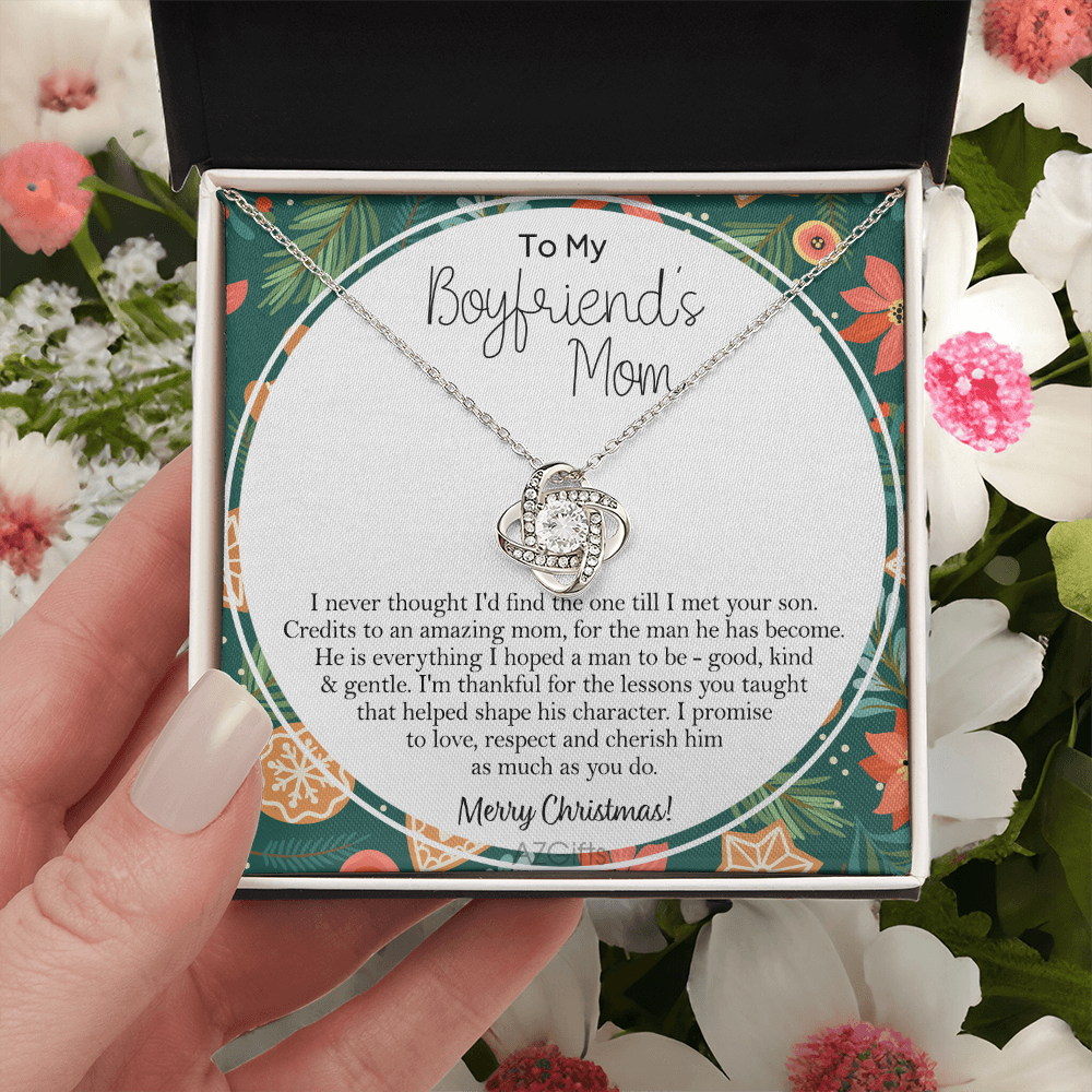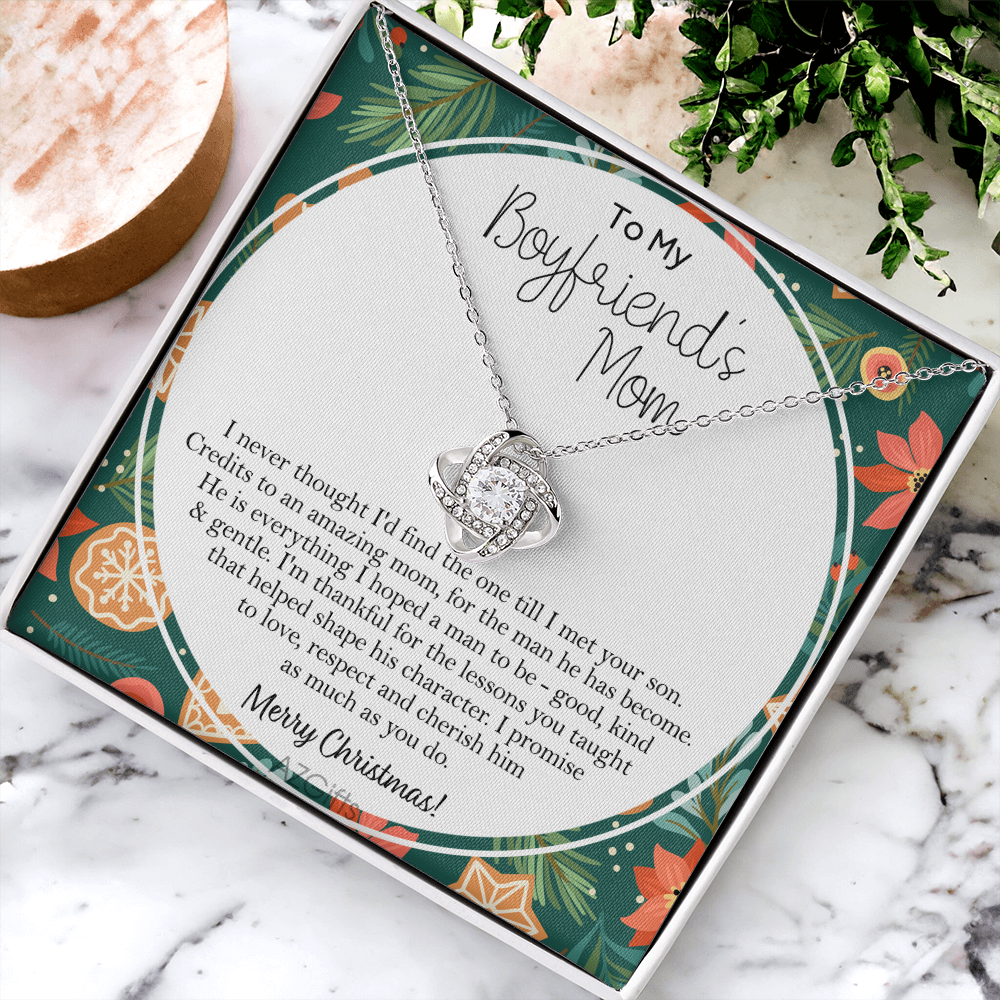 Gift Necklace For Boyfriend's Mom, Merry Christmas Necklace Gift, To My Boyfriend's Mom Necklace From Son, To An Amazing Mom Gift Necklac, Boyfriend's Mom Gift Necklace Love Knot Jewelry For Mom