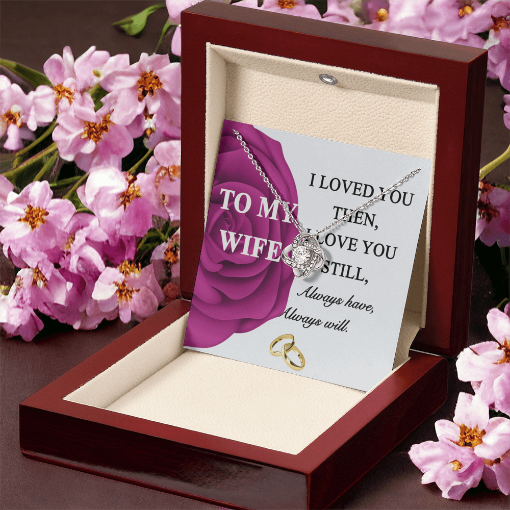 Gift Necklace For Wife, To My Wife Necklace From Husband, Love Knot Jewelry Gift For Wife, Husband To Wife Love Knot Pendant, Rose Necklace For Wife Jewelry Gift For Women I Loved You Then Necklace