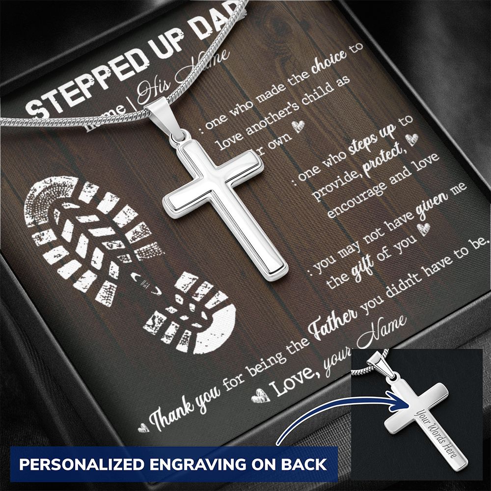 Gift to My Stepped Up Dad Necklace for Stepped Up Dad Stepfather, Thank You for Everything My Step Dad Fathers Day Cards, Father's Day Necklace, Gifts for Step Dads On Father S Day6 Personalized Cross Necklace