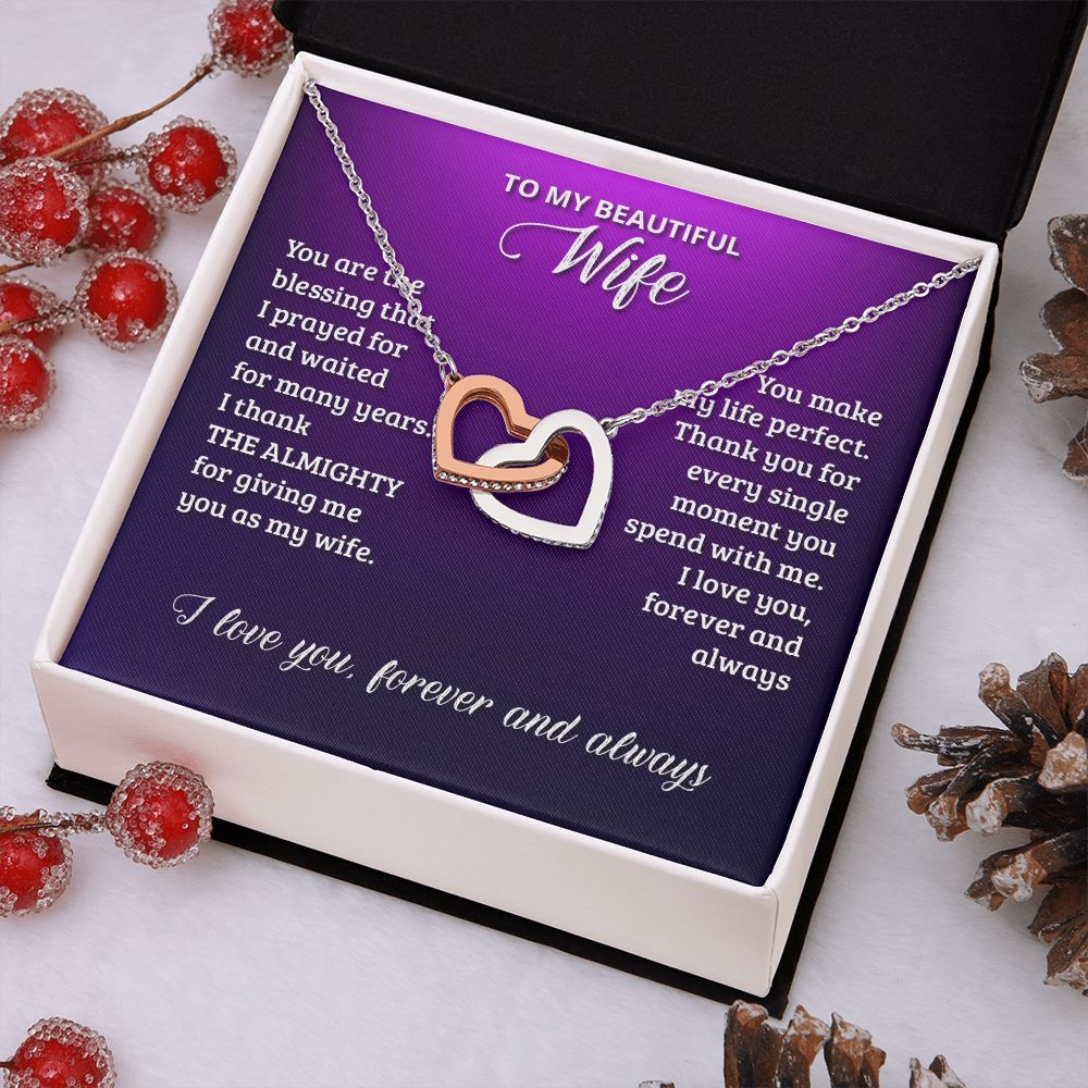 Gifts For Wife Romantic, Wife Birthday Gift Ideas, To My Beautiful Wife Necklace, Interlocking Hearts Necklace For Wife From Husband, Message Card and Gift Box