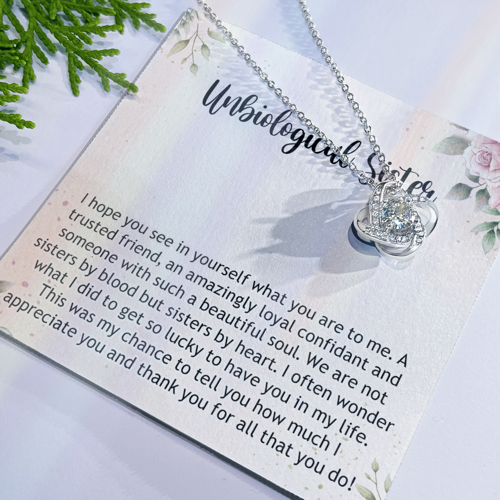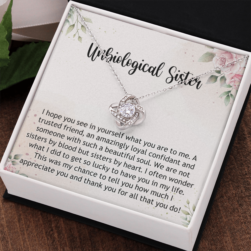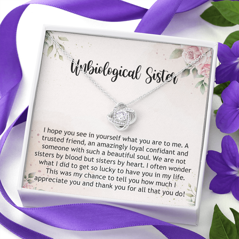 Gifts Necklace For Unbiological Sister, Unbiological Sister Love Knot Necklace Gift For Sister, Unbiological Sister Gift Necklace On Birthday Gift Anniversary To Unbiological Sister Best Friend Gift