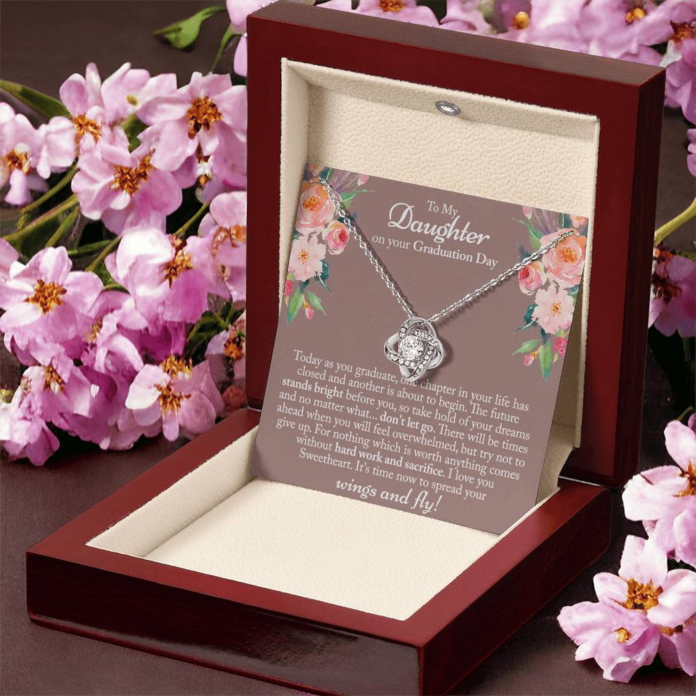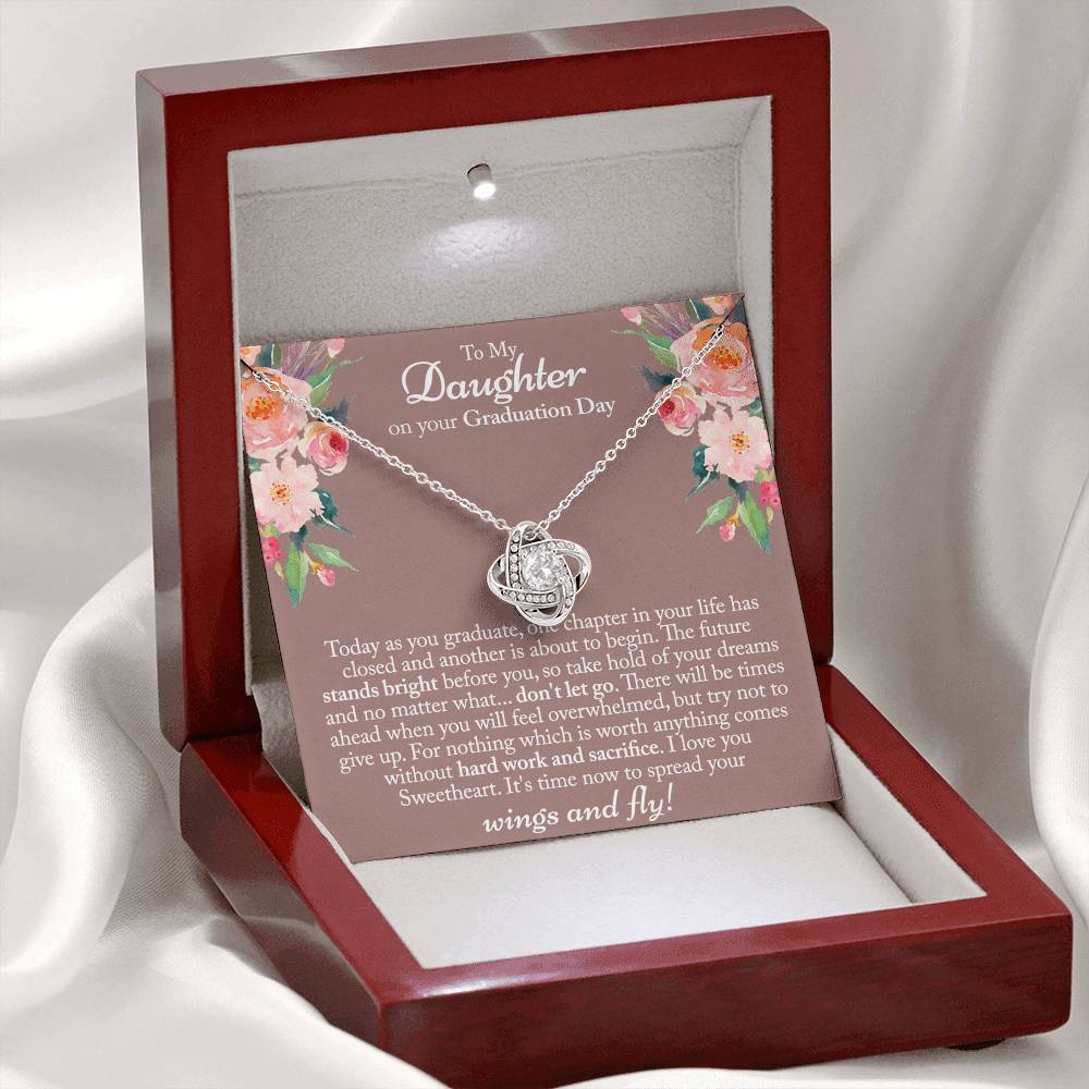 Graduation Day Gift Necklace, To My Daughter Love Knot Necklace From Mom Or Dad, Mother And Daughter Jewelry Gift For Girls, Little Girl Love Knot Pendant, Daughter On Your Graduation Day Necklace
