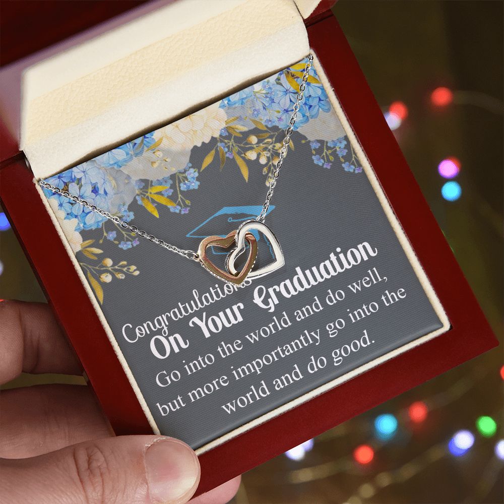 Graduation Gift Necklace For Girls, Graduation Jewelry, College, High School Congrats Graduation Pendants Gift For Daughter, Granddaughter, Niece, Sister Interlocking Hearts Necklace