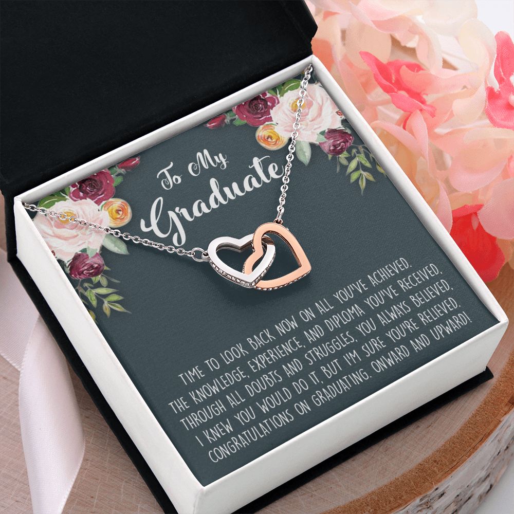 Graduation Gift Necklace for Girls Jewelry, College, High School, Elementary School, Senior Graduation Congrats Graduation Pendants Gift For Daughter, Granddaughter, Niece, Sister Interlocking Hearts Necklace