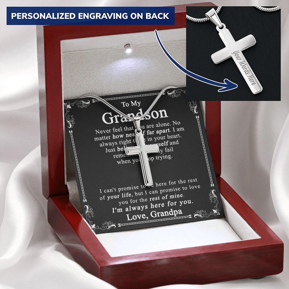 Grandson Keepsake Gift Cross Necklace For Grandson, Cross Pendant Gift For Grandson from Grandpa, Grandfather and Grandson Necklace, Grandson Jewelry, Cross Necklace for Grandson, Jewelry For Boys Personalized Cross Necklace 2222
