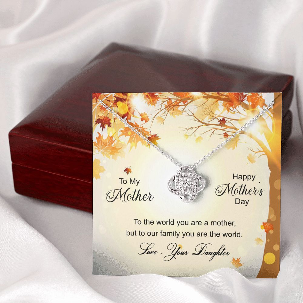 Happy Mother's Day Gift Necklace, To My Mother Love Knot Necklace From Daughter, Badass Mom Necklace Gift For Mom, Mother And Daughter Jewelry Gift For Women, Bonus Mom You Are The World Necklace Love Knot Necklace 6323
