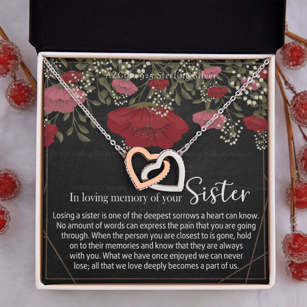 In Loving Memory of Your Sister Necklace Grief Gifts for Grieving Gift for Memorial Pendant Necklace Gifts for Remembrance Gifts for Bereavement Gifts Sorry for Your Loss 301 Interlocking Hearts Necklace