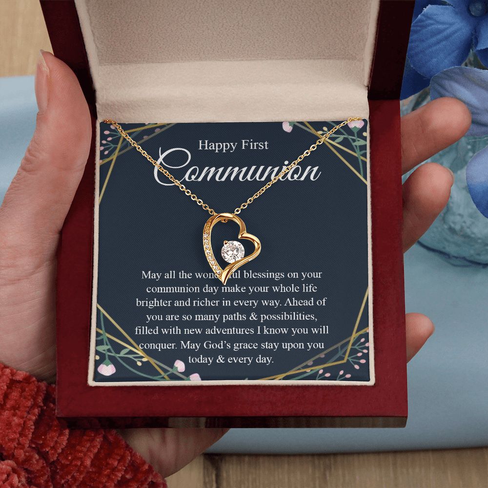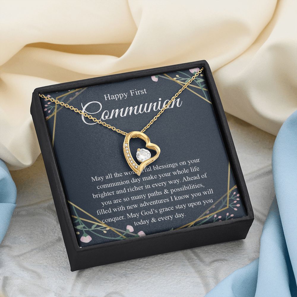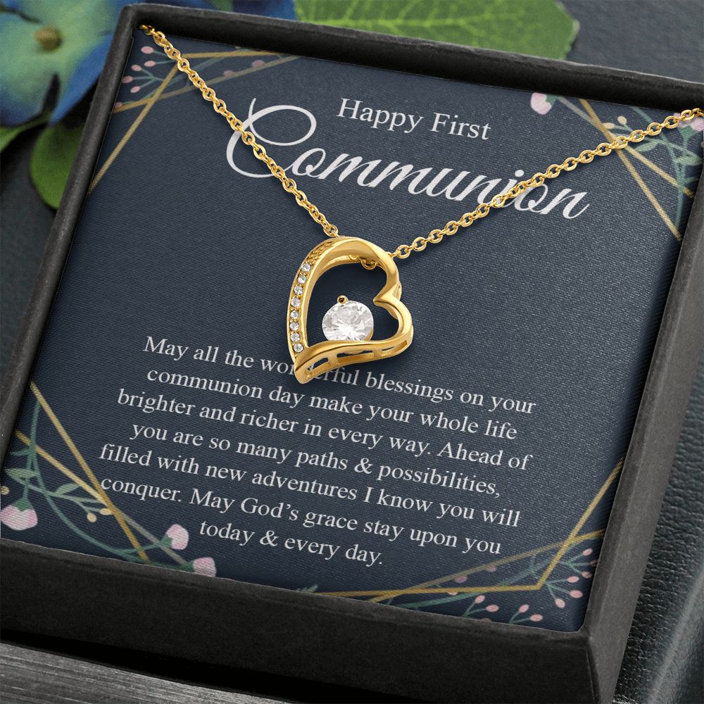 Interlocking Hearts Necklace, For First Communion Gift First Holy Communion Congrats Graduation Pendants Gift For Daughter, Granddaughter, Niece, Sister Forever Love Necklace