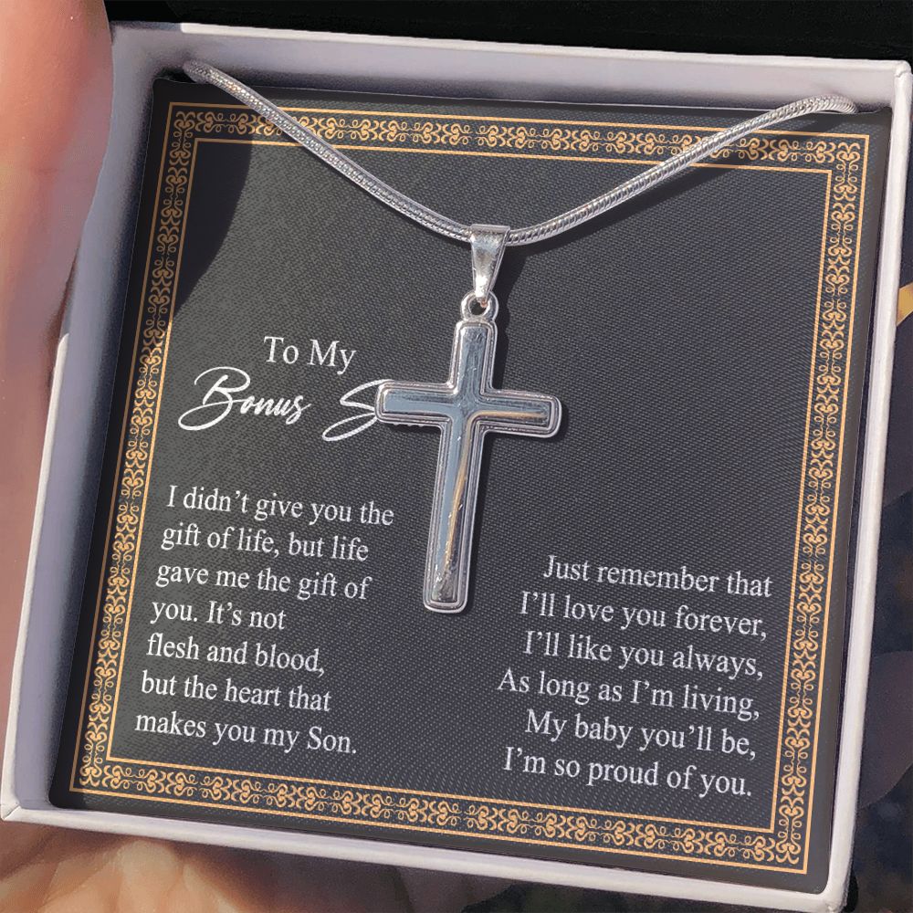 Jewelry For Mens - Bonus Son Necklace Gift, to My Bonus Son Jewelry from Mom, Lion Necklace Pendant, Step Son Gift, for Bonus Son, Adopted Son Gift Necklace, Stepchild Gifts 14K Cross Personalized Cross Necklace