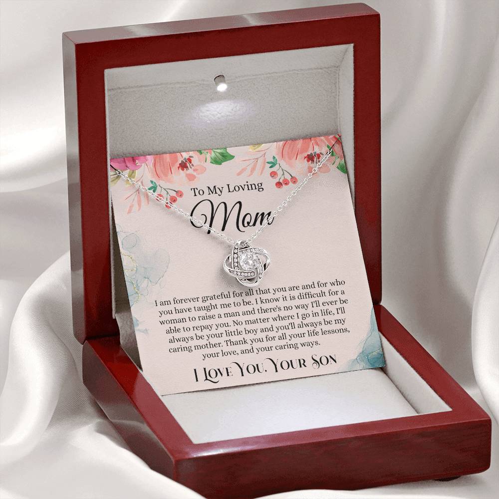 Loving Mom Gift Necklace, Mother's Day Necklace Gift For Mom, To My Loving Mom Love Knot Necklace Gift for Mom, Gift Anniversary Mother And Son Gift Pendant, Jewelry Gift For Women, Mom From Son