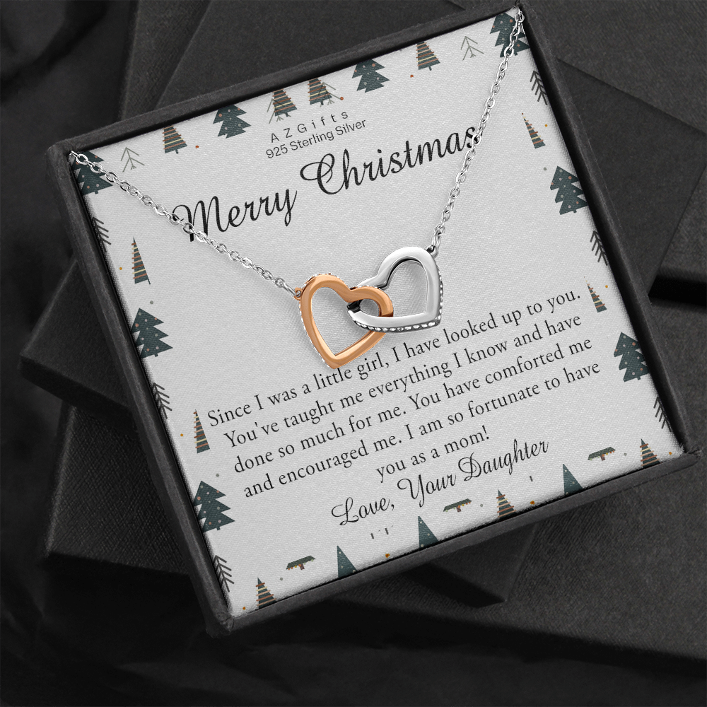 Merry Christmas Gift From Daughter, Christmas Necklace Gift For Mom interlocking hearts necklace 1608