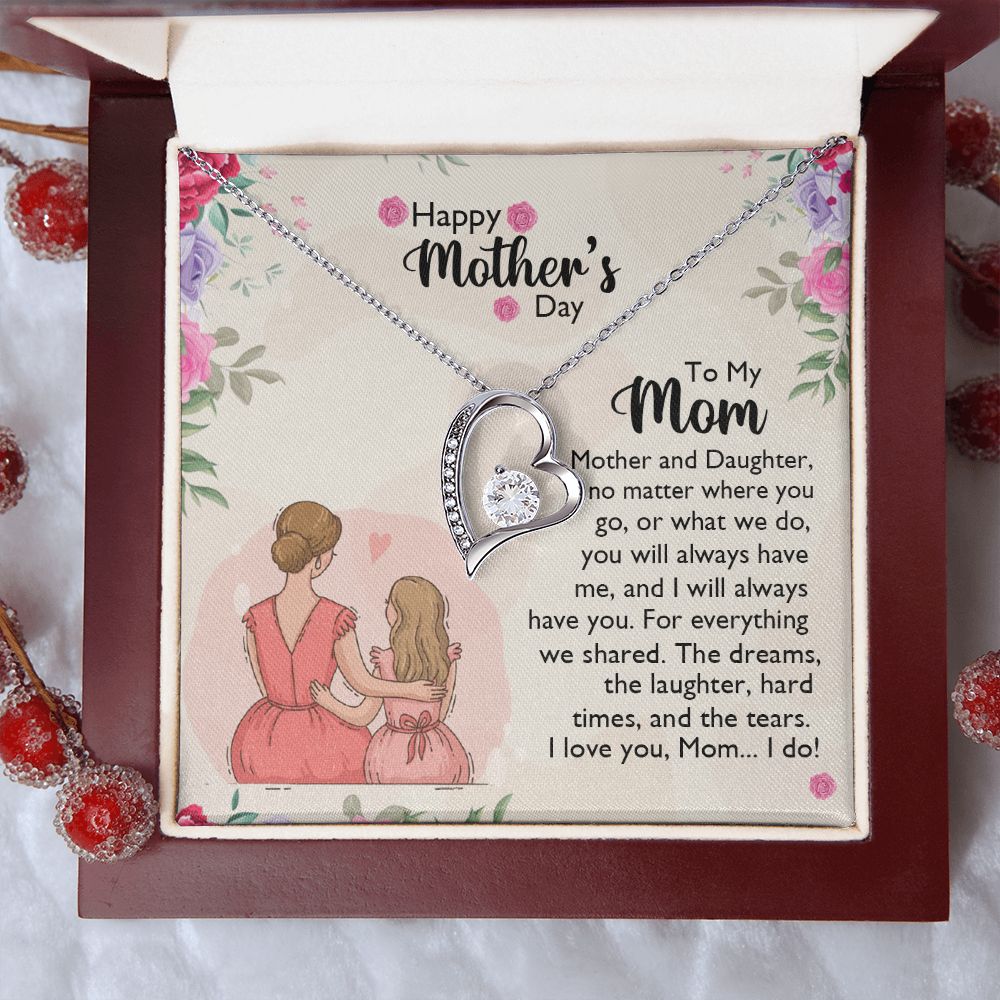 Mom Necklace Gifts for Mom from Daughter to Mom Gifts for Mothers Day from Daughter, To My Mom Necklace from Daughter to Mom Birthday Gifts Necklace with Message Card and Gift Box11 Forever Love Necklace