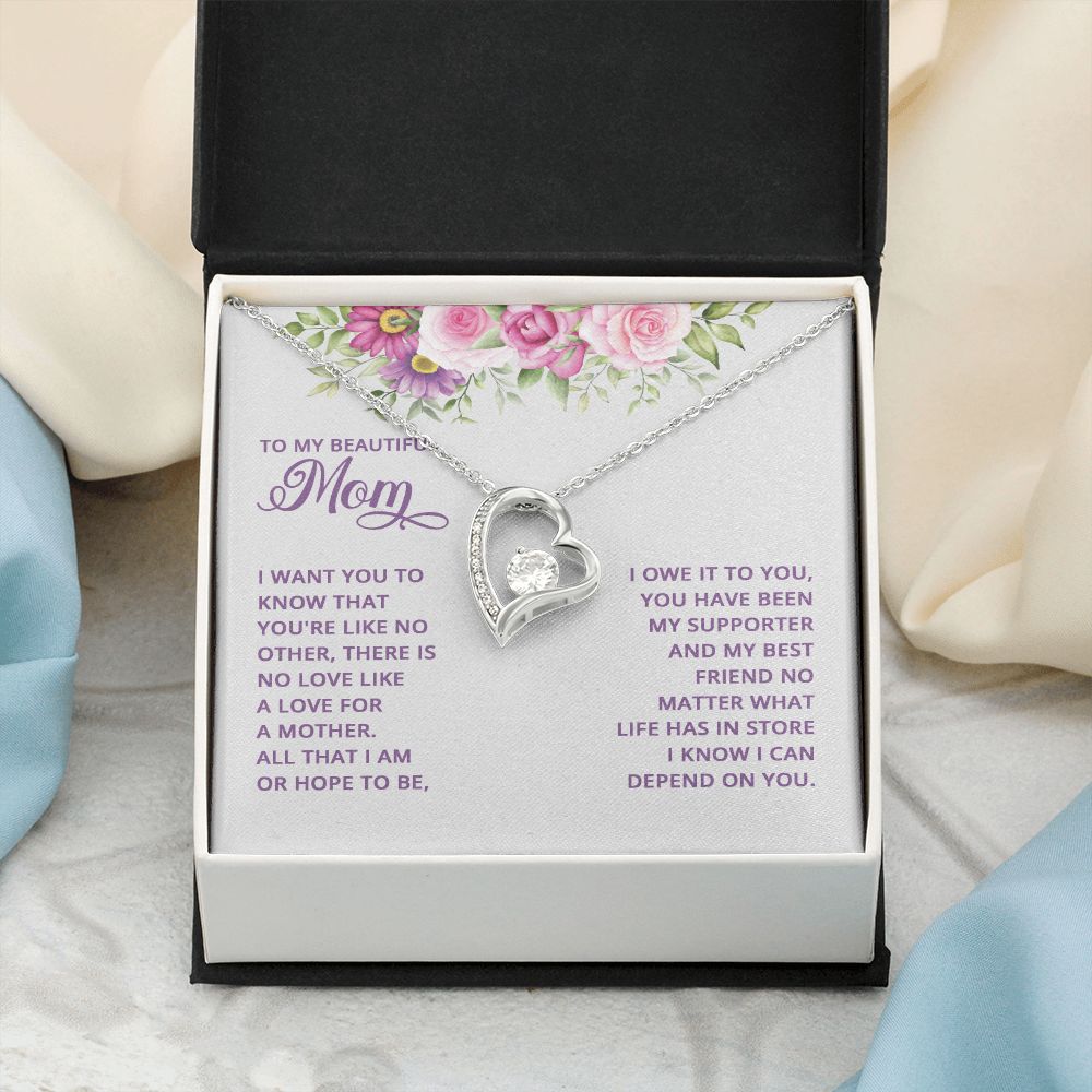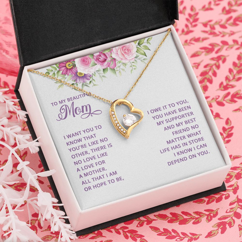 Mom Necklace Gifts for Mom from Daughter to Mom Gifts for Mothers Day from Daughter, To My Mom Necklace from Daughter to Mom Birthday Gifts Necklace with Message Card and Gift Box17 Forever Love Necklace