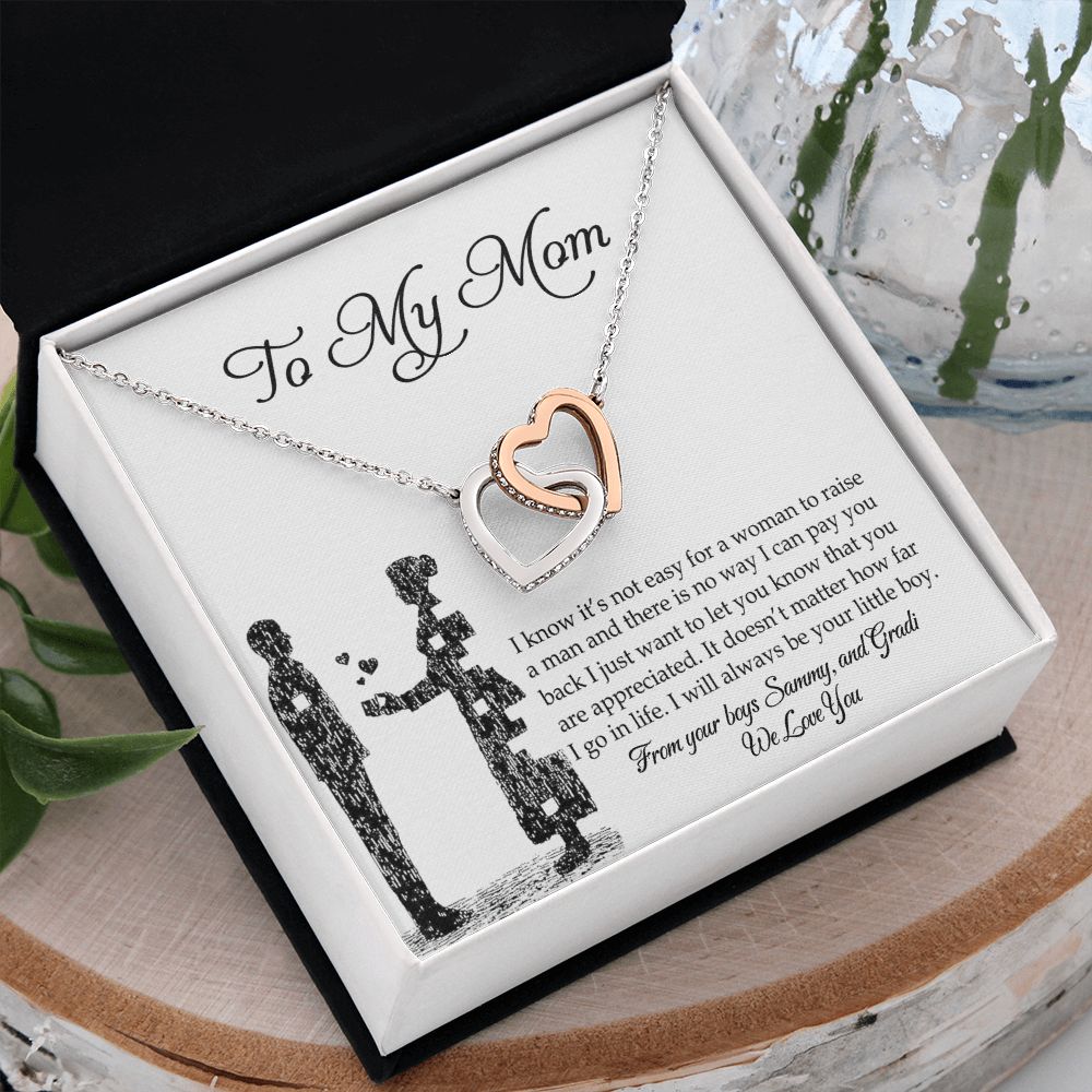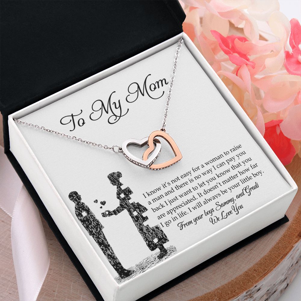 Mom Necklace Gifts for Mom from Daughter to Mom Gifts for Mothers Day from Daughter, To My Mom Necklace from Daughter to Mom Birthday Gifts Necklace with Message Card and Gift Box2 Interlocking Hearts Necklace