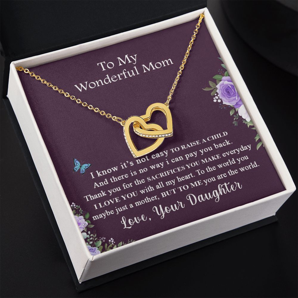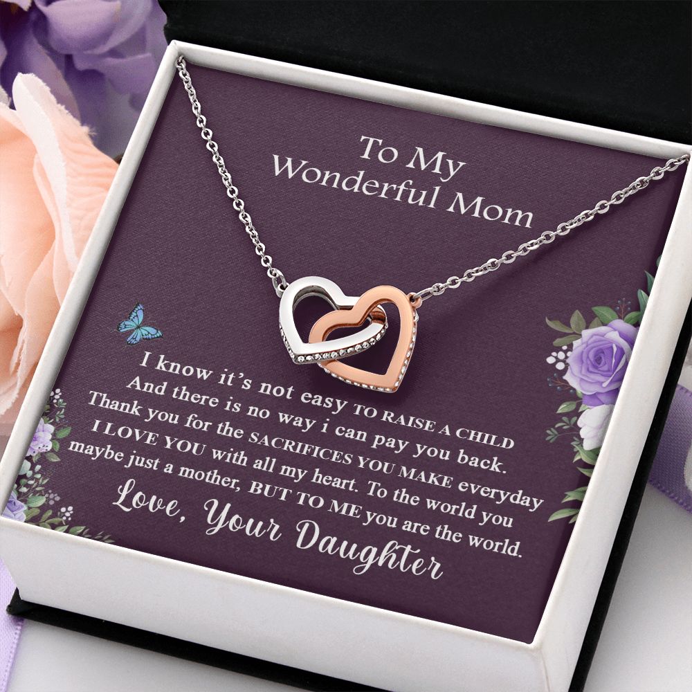 Mom Necklace Gifts for Mom from Daughter to Mom Gifts for Mothers Day from Daughter, To My Mom Necklace from Daughter to Mom Birthday Gifts Necklace with Message Card and Gift Box2231 Interlocking Hearts Necklace