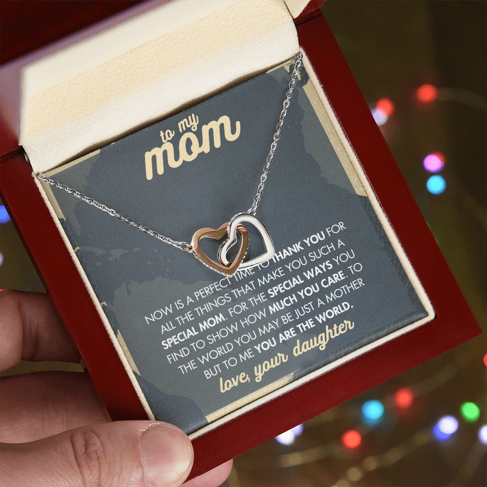 Mom Necklace Gifts for Mom from Daughter to Mom Gifts for Mothers Day from Daughter, To My Mom Necklace from Daughter to Mom Birthday Gifts Necklace with Message Card and Gift Box2237 Interlocking Hearts Necklace