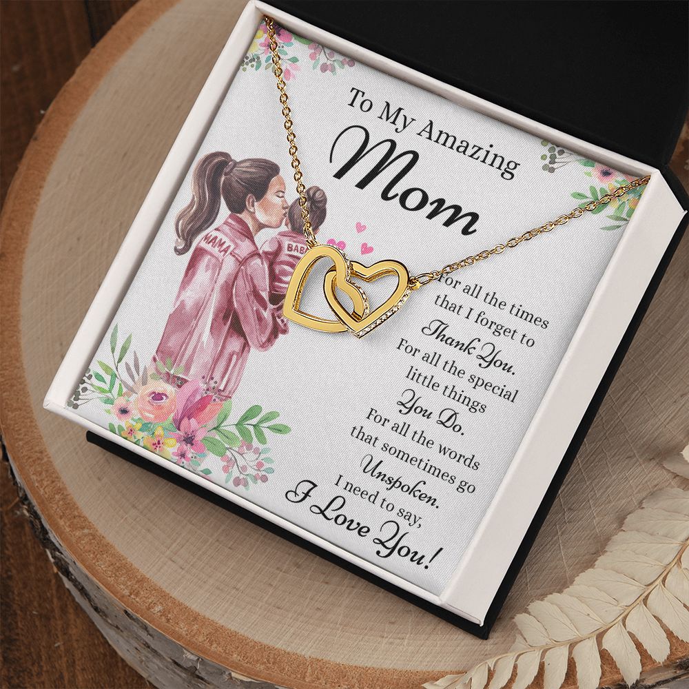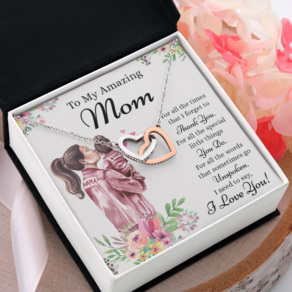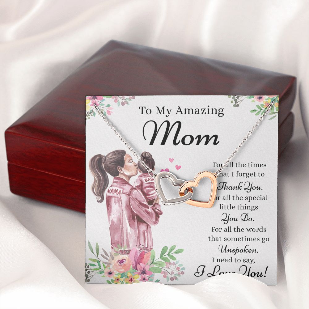 Mom Necklace Gifts for Mom from Daughter to Mom Gifts for Mothers Day from Daughter, To My Mom Necklace from Daughter to Mom Birthday Gifts Necklace with Message Card and Gift Box2240 Interlocking Hearts Necklace
