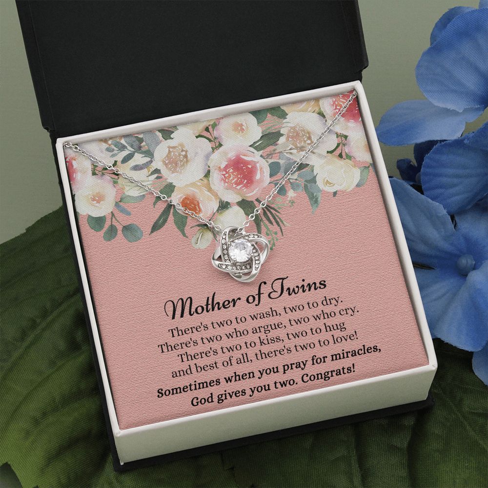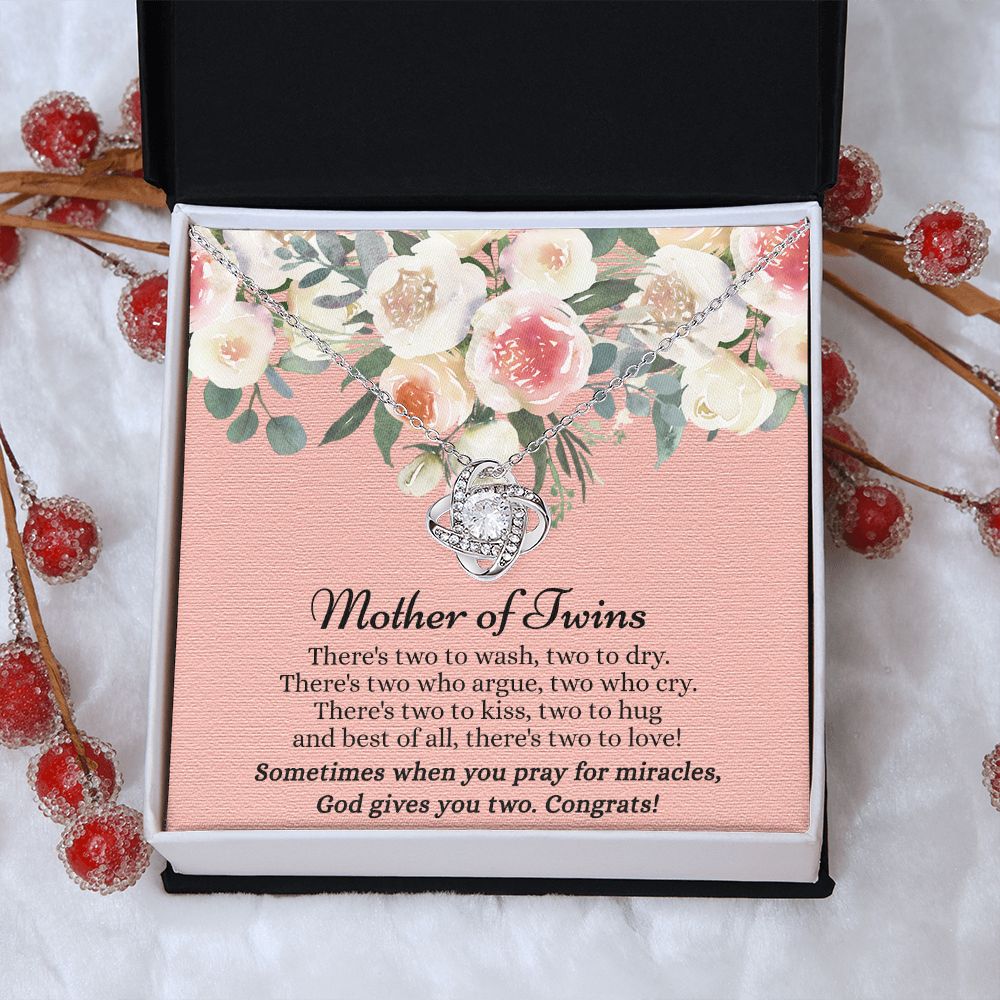 Mom Of Twins Necklace, Jewelry Gift For Mother Of Twins Love Knot Necklace, Parents of Twins, Gift Necklace For New Mom of Twins, Birthday Gift For Mom of Twins Necklace, New Mom Gift Necklace Love Knot Necklace 6323