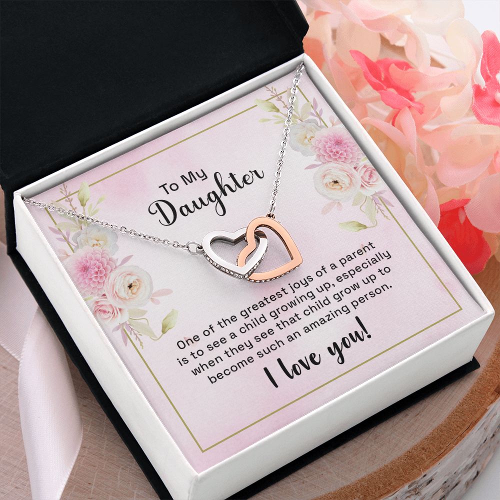 Mother and Daughter Necklace for Girls, To My Daughter Gift Necklace from Mom, Birthday Christmas Gift Graduation Gifts for Daughters, Jewelry Pendant Present for Daughter, Mother Daughter Gift 44 Interlocking Hearts Necklace