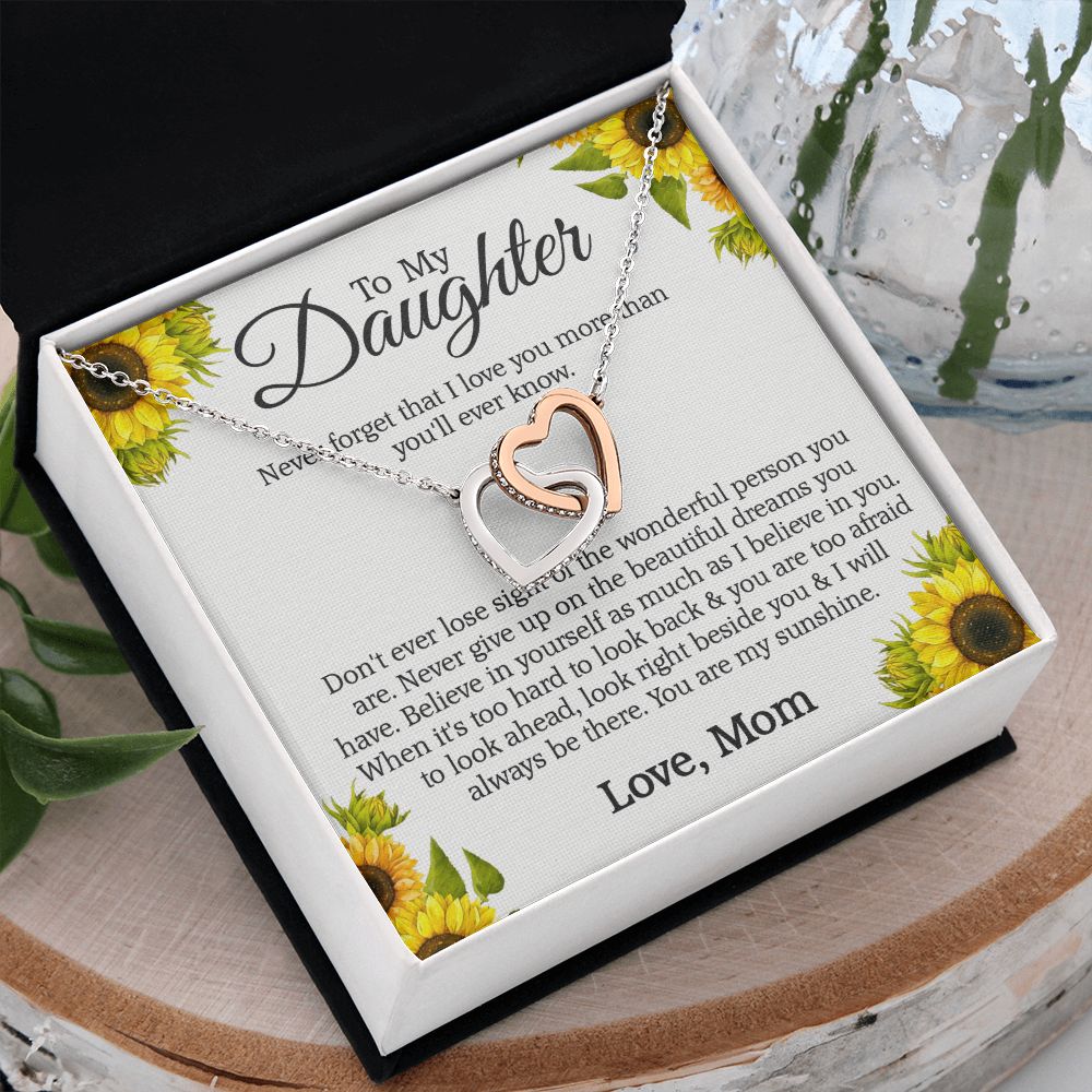 Mother Daughter Gift Ideas, To My Daughter Gift Necklace from Mom, Jewelry Pendant Present for Daughter, Birthday Christmas Gift Graduation Gifts for Daughters, Mother and Daughter Necklace 2132 Interlocking Hearts Necklace