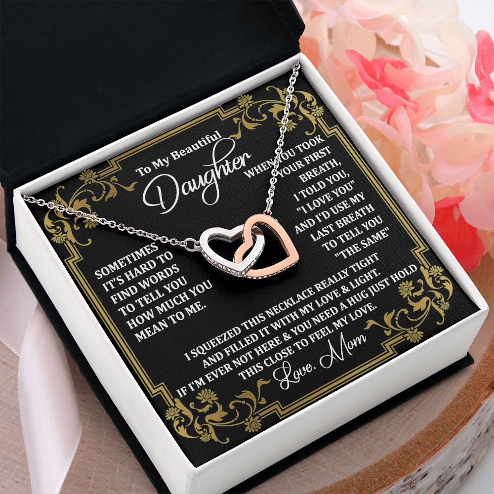 Mother Daughter Gift Ideas, To My Daughter Gift Necklace from Mom, Jewelry Pendant Present for Daughter, Birthday Christmas Gift Graduation Gifts for Daughters, Mother and Daughter Necklace 2134 Interlocking Hearts Necklace