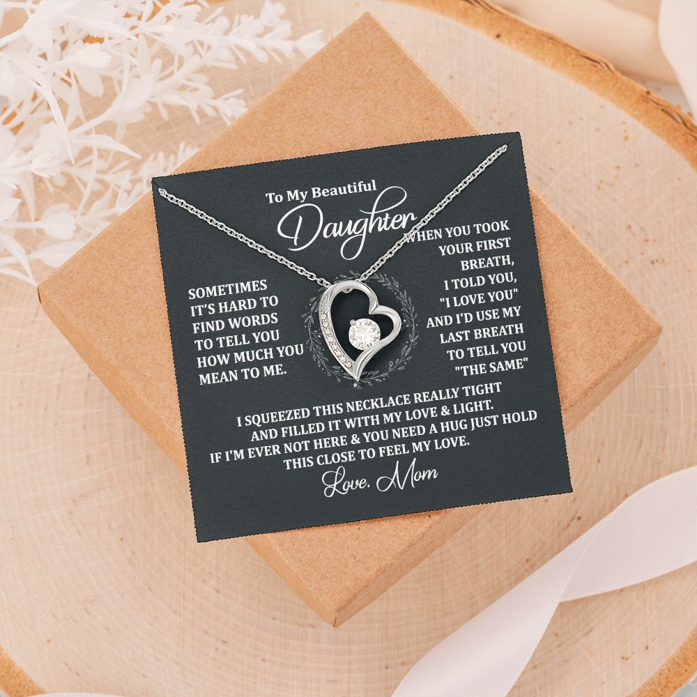 Mother Daughter Gift Ideas, To My Daughter Gift Necklace from Mom, Jewelry Pendant Present for Daughter, Birthday Christmas Gift Graduation Gifts for Daughters, Mother and Daughter Necklace 2135 Forever Love Necklace