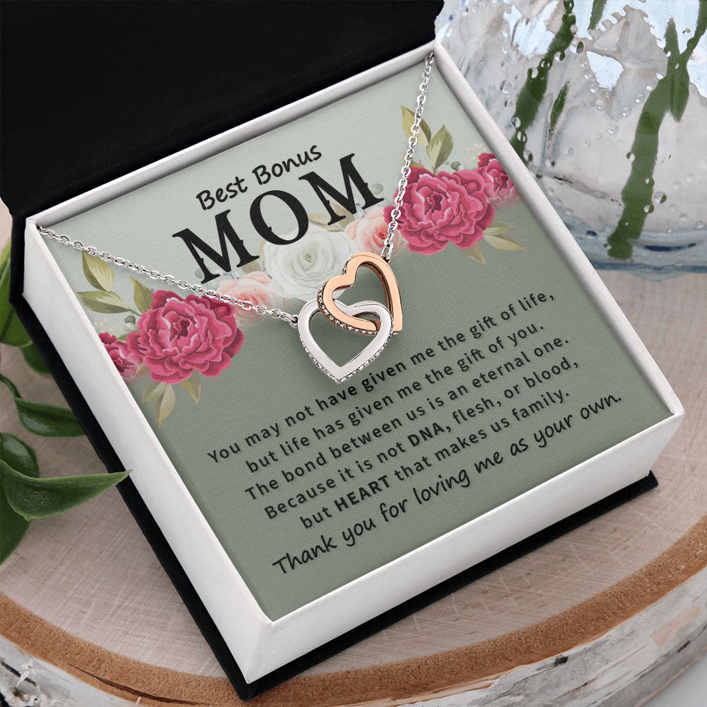 Mother Daughter Necklace as Daughter Gift from Mom, Mom Necklace as Christmas Gift for Mom from Son, Birthday Gift for Mother in Law Necklace, Bonus Mom Gifts for Step Mom Necklace2 Interlocking Hearts Necklace