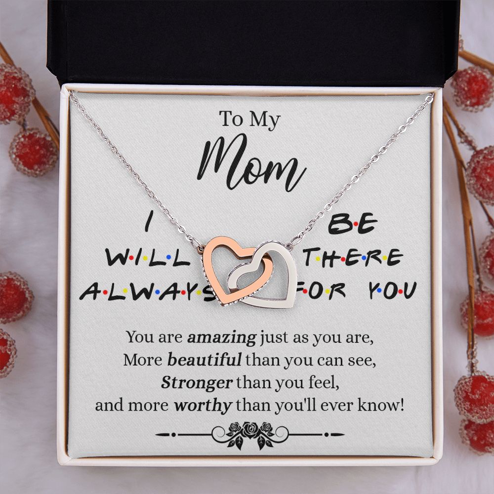 Mother Daughter Necklace Gifts For Mom Birthday Christmas Mothers Day Present To My Mom Jewelry Pendant Message Card Gift Box Interlocking Hearts Necklace