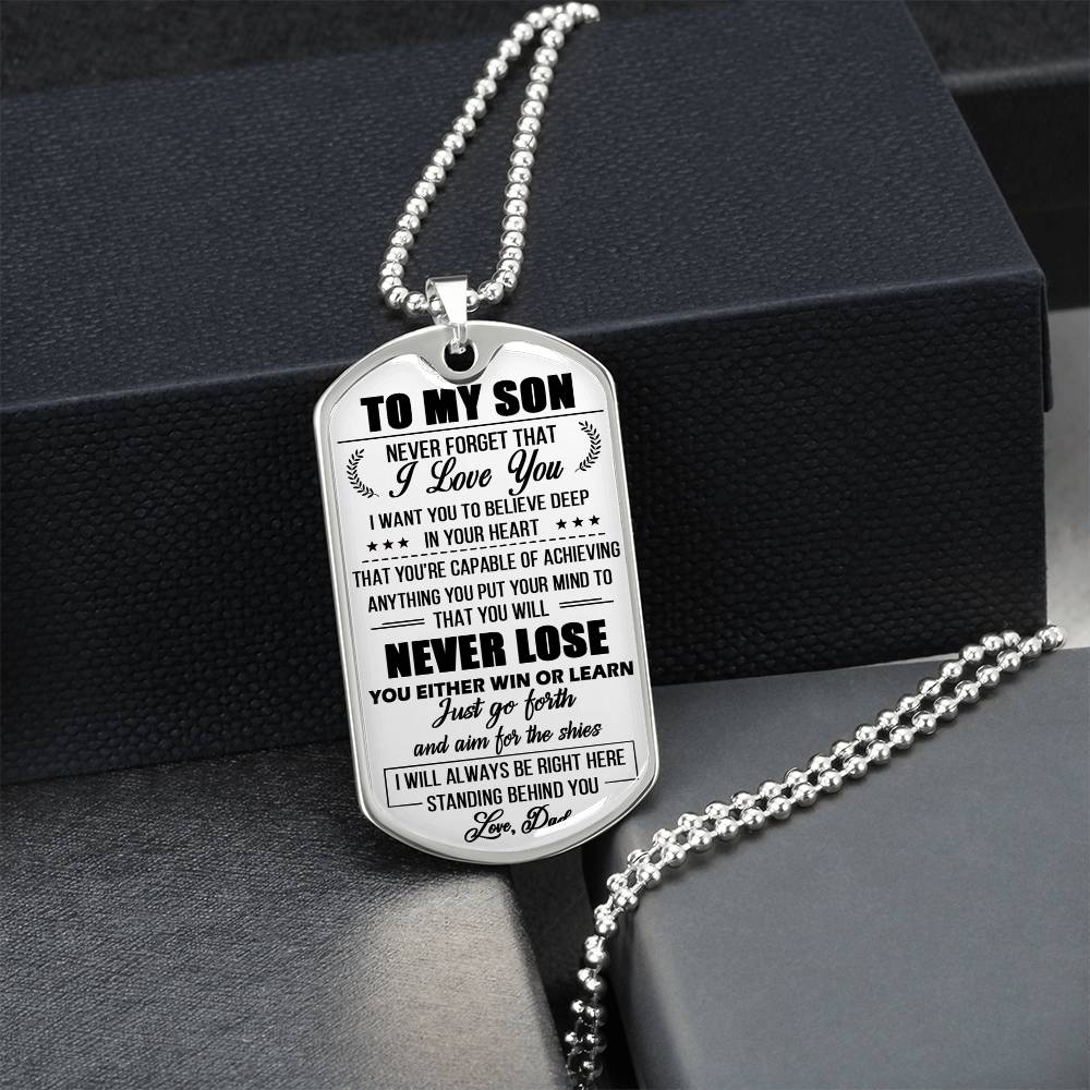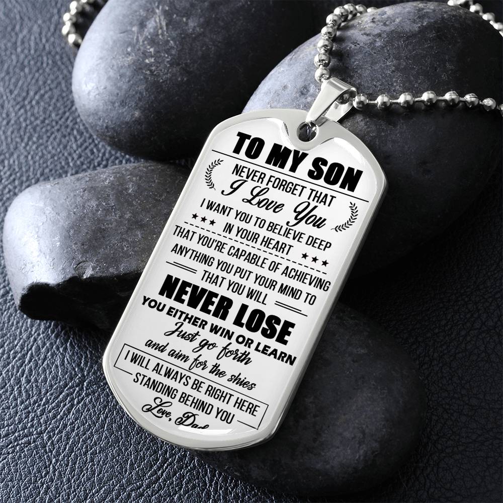 Never Forget That I Love You To MY Son Dog Tag Chain Gift From Daddy