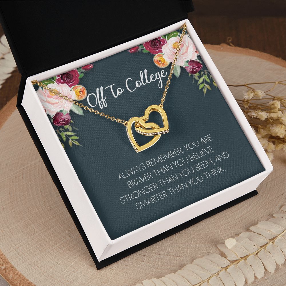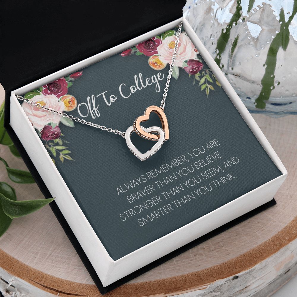 Off To College Necklace, Graduation Gifts For for Girl Congrats Graduation Pendants Gift For Daughter, Granddaughter, Niece, Sister Interlocking Hearts Necklace