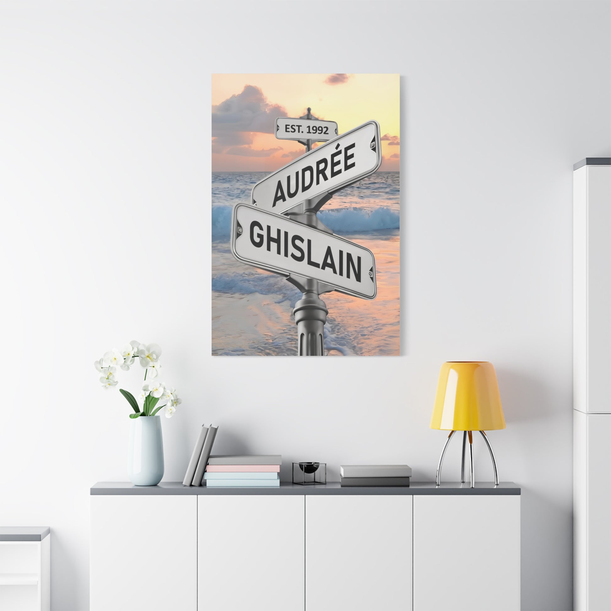 Personalized Crossroads Street Sign For Couples Name And Date Wall Art Canvas His And Hers, Customized Est Street Sign Hers Gift On Wedding, Engagement, Anniversary, Mothers Day, Gift For Couple 02