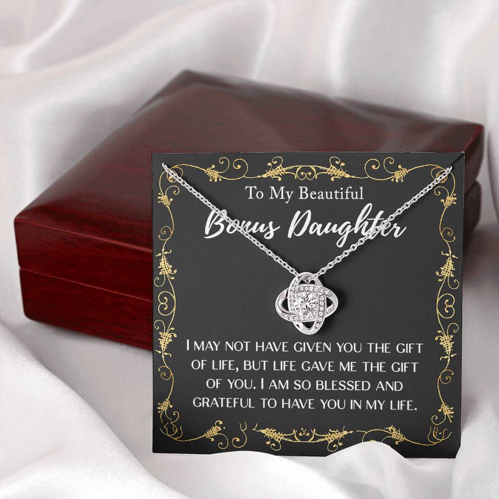 Personalized Gift Necklace For Daughter - To My Beautiful Bonus Daughter Love Knot Necklace From Mom And Dad, Step daughter Gift Necklace, Pendant Jewelry Gift For Girls, Little Girls