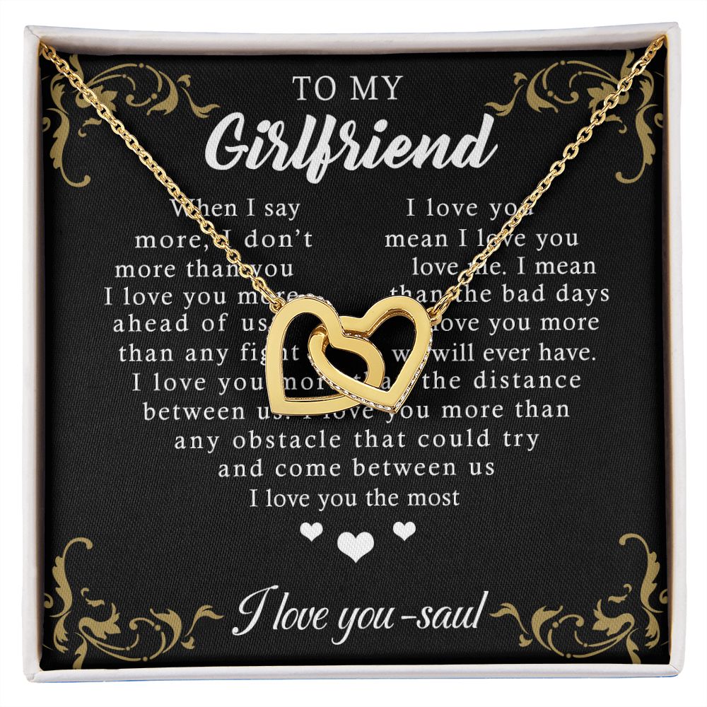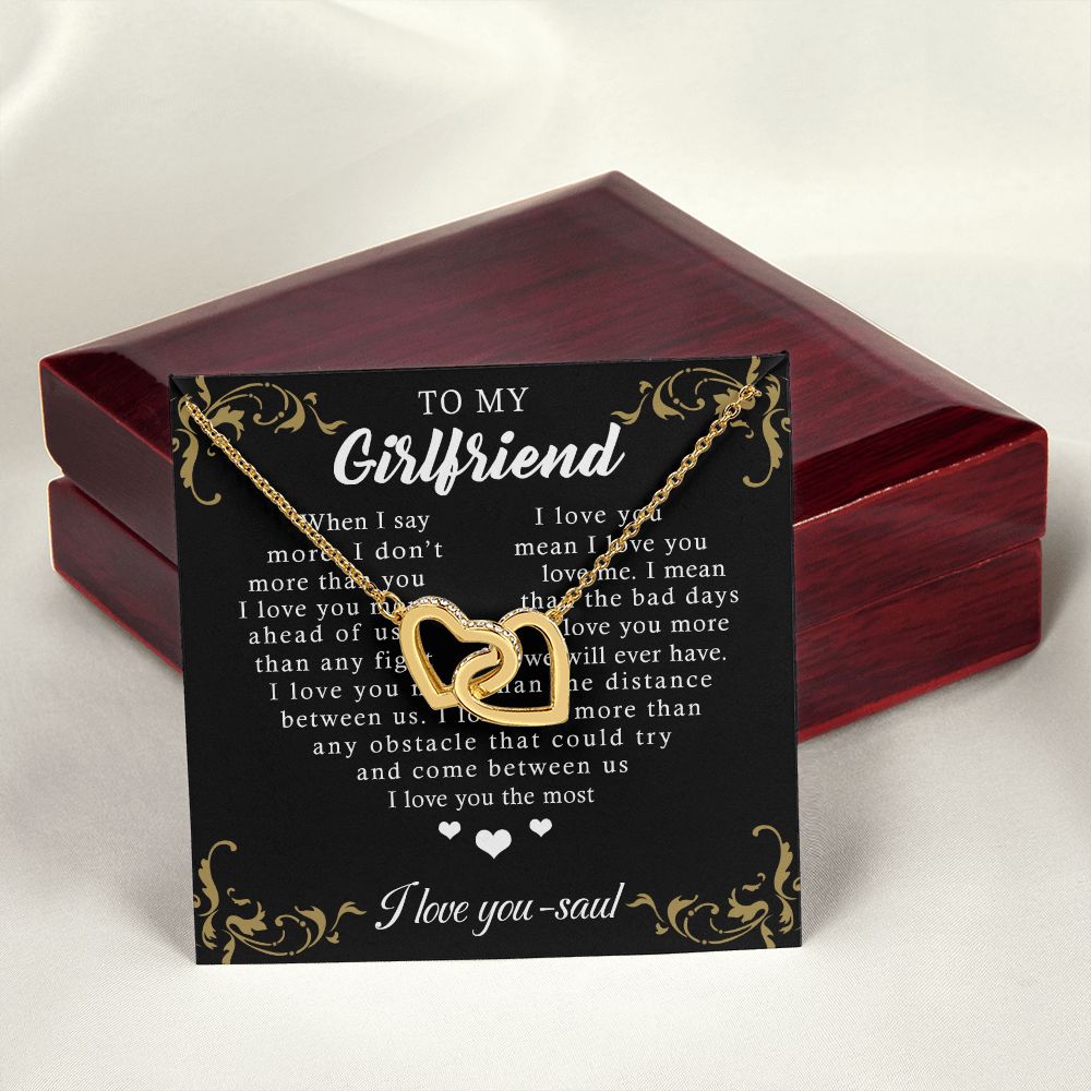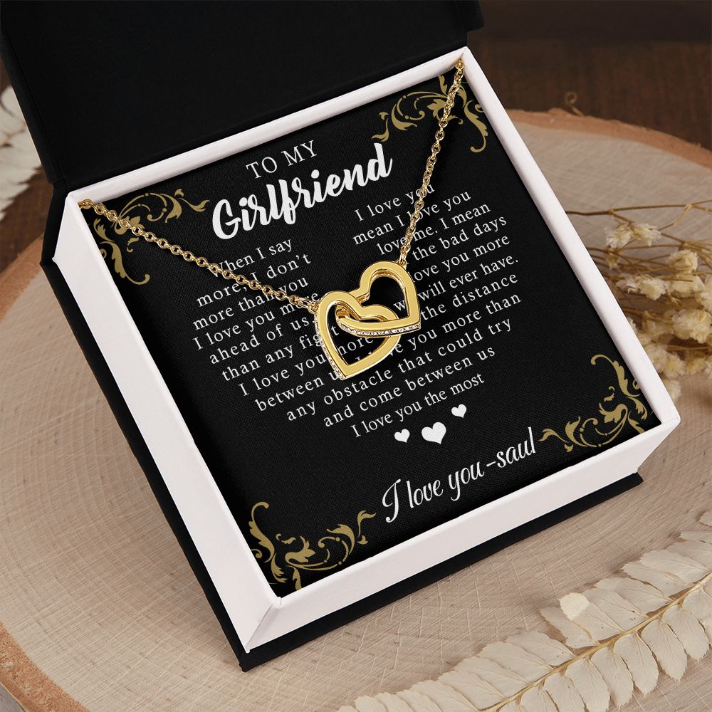To My Girlfriend Necklace from Boyfriend, Personalized Necklace for Women, Luxury Necklace for Girlfriend, Wedding Anniversary Present For Her, Girlfriend Gift Jewelry Christmas Birthday Gift Interlocking Hearts Necklace